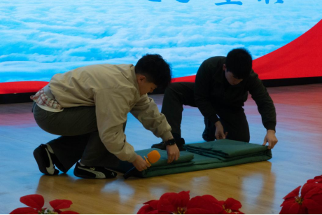 在“寝艺秀场”环节中,各寝室成员展示了娴熟的日常技能,如叠被整理等,在趣味竞技中提升了生活实践能力;随后的才艺表演环节更是精彩纷呈,歌曲、舞蹈、小品等节目轮番登场,现场气氛热烈,欢声不断,充分展现出同学们的青春活力与艺术才华。