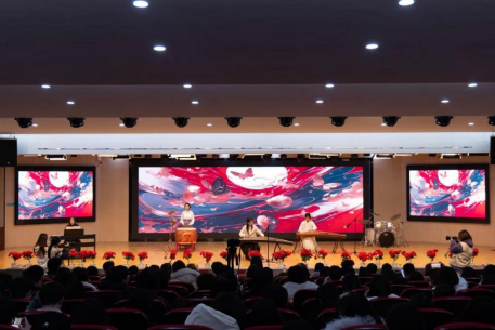 本场演出同时作为大学生美育中心音乐类课程的阶段性教学汇报,集中展示了民乐团、西洋乐团、声乐团及节奏与打击乐团等多支艺术团队的综合实力。学工部部长徐振东,学工部副部长、校团委书记余婷,发展规划处裴中云老师,现代商务学部学工办主任唐娜老师,校团委张莹老师,数字传媒学部张幸老师,学工部蒋芷琳老师莅临现场,与三百余名师生共同观看了演出。