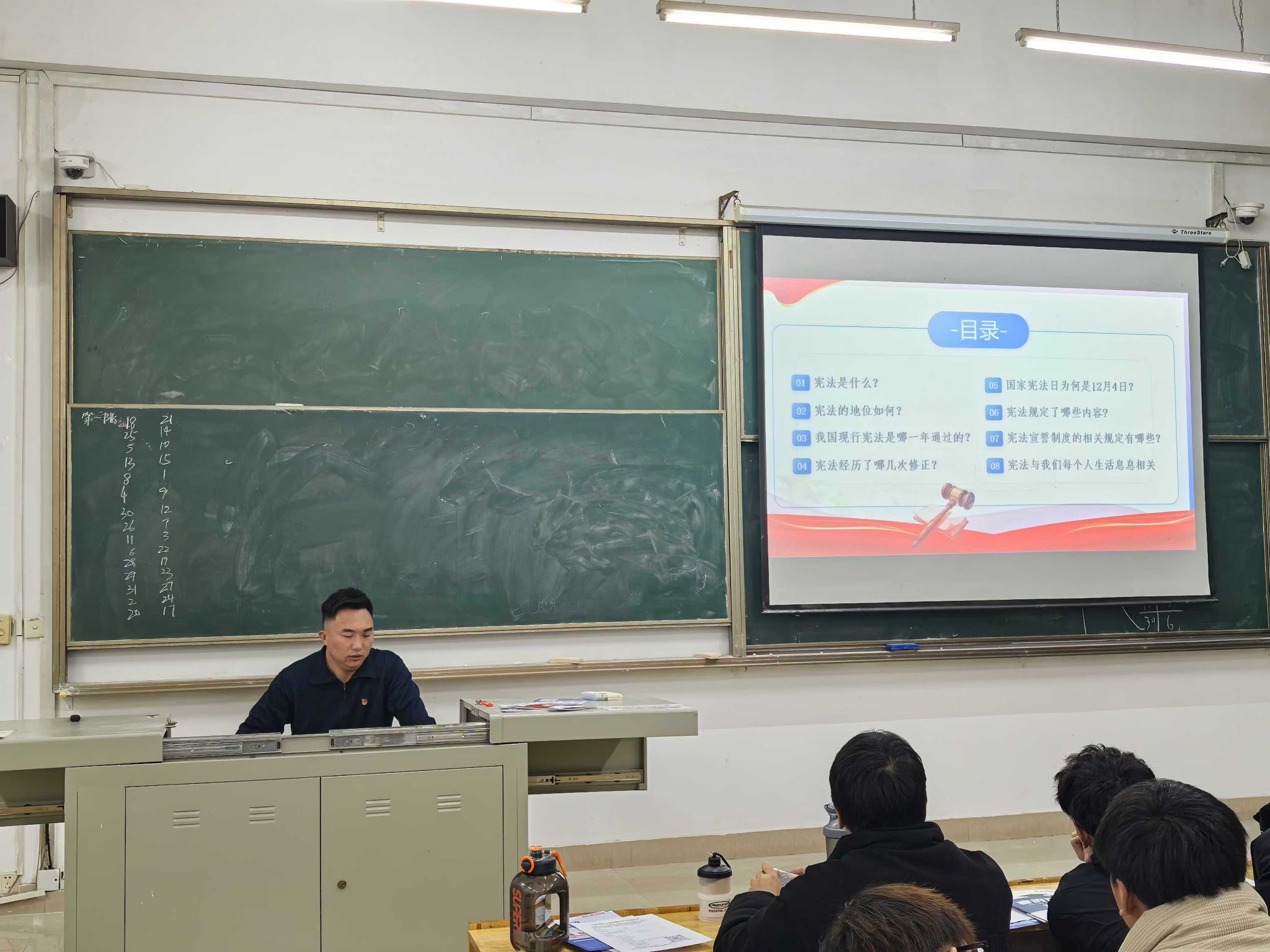 为让宪法知识入脑入心,学校通过多媒体平台,精心组织22级全体学生观看宪法知识科普视频。视频内容涵盖宪法的诞生背景、基本原则、核心内容等,将晦涩法条转化为通俗易懂的动画与案例解读,引得同学们目不转睛,沉浸其中。观影过程中,教室里不时传出小声讨论,大家针对公民基本权利、国家机构设置等重点内容交换看法,碰撞出思想火花。
