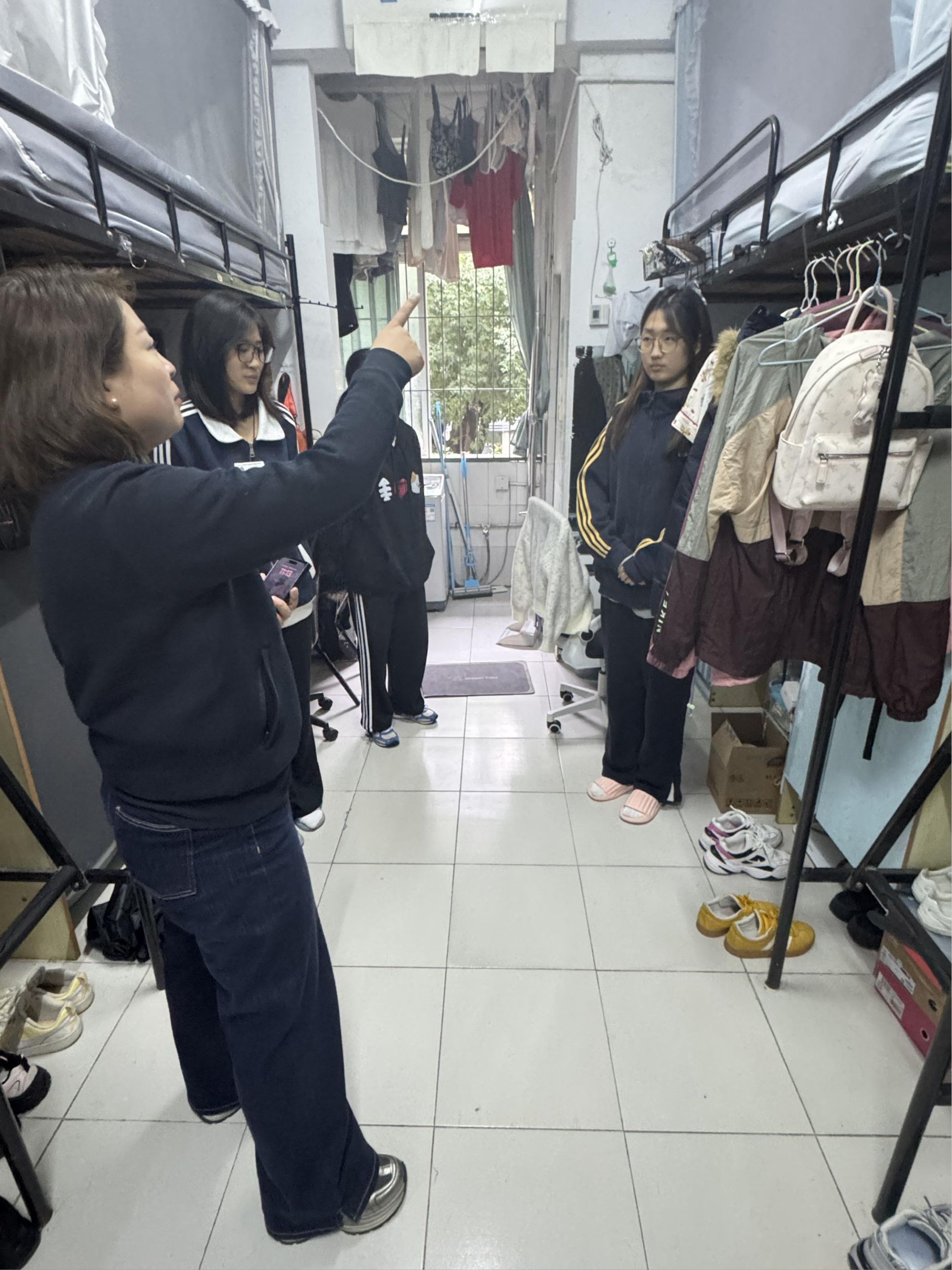 座谈会后,班导带领班委深入学生寝室开展安全巡查。重点检查了寝室用电安全、消防设施配备及卫生状况,对发现的安全隐患及时提醒整改,同时叮嘱同学们注意作息规律,保持寝室整洁,营造安全舒适的住宿环境。