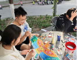 制作现场,气氛热烈非凡。处理竹条的同学,仔细打磨、精准切割,将其绑扎成稳固的骨架,恰似古人精心雕琢的工艺;绘制风筝的同学,以笔为刃,在风筝面上绘出“等闲识得东风面,万紫千红总是春”的烂漫春景,或写下对未来的美好愿景,每一笔都饱含着对传统文化的热爱。大家互帮互助,遇到难题共同攻克,在交流合作中提升了劳动技能。