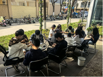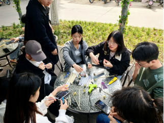 随后的组装和装饰环节中,同学们充分发挥自己的动手能力和审美能力。他们精心挑选装饰配件,有的小组用彩色丝线缠绕,有的小组则搭配小巧的贝壳和羽毛,让风铃兼具美观与个性。在大家的共同努力下,一个个独具匠心的风铃逐渐成型。微风拂过,学生社区内响起清脆悦耳的风铃声,仿佛奏响了一曲曲春日赞歌。