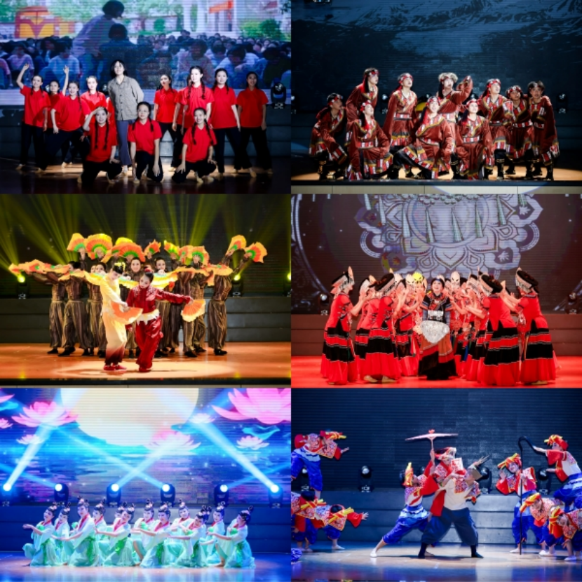 精彩纷呈的舞蹈盛宴由马克思主义学院的《我的妈妈叫桂梅》拉开帷幕,舞者们以灵动的舞姿,诉说着张桂梅老师与学生之间的动人真情;交通物流学院一曲《阳光下》灵动跳跃,每一个舞步都蕴含着藏家儿女奔向幸福的喜悦;管理学院的《冰凌花》以东北秧歌为底,借扇舞拟态,以舞者蜕变隐喻共鸣,赞颂东北人民无畏严寒的坚韧精神;经济学院《盛装·礼赞》叮当作响的银饰是彝族人用血脉熔铸的史诗长卷,翻飞的裙裾是千年时光编织的生命礼赞;物理与力学学院《莲鼓越歌行》水袖轻扬似流云裁月,千年文化的魂魄注入方寸舞台;机电学院的《豆豉粑娶媳妇》用独特的艺术呈现,诠释着乡土文化的深厚内涵,折射出乡村文化传承与创新所带来的蓬勃力量。