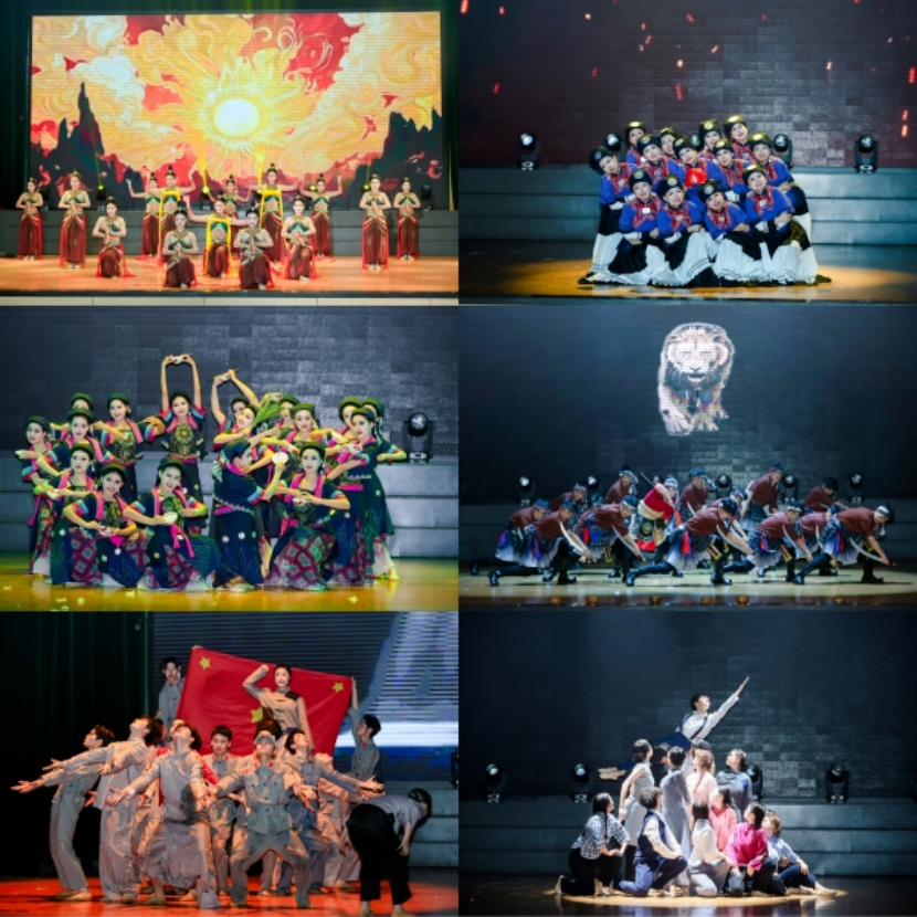 国教学院在《伎乐飞天》中以身为笔使千年壁画重生,摇曳间乐音化羽入云间;法社学院的《挽歌》以彝族文化为载体,祭奠凉山救火英烈,在个体与集体情感交织中诠释生命价值与英雄精神;艺设学院的《生生回响》以非遗“跳娘舞”的曼妙舞姿勾勒四季轮回,足尖起落间踏响千年农耕文明的节拍;材料学院的《博巴森根·出征》舞动的是民族气节,唤醒的是血脉共鸣;自动化学院《烈火中永生》讲述先烈们的革命事迹,舞台上被火焰吞噬的身影化作照耀后世的星辰;随着安全应急学院《红船》的舞步收束,舞者们用身姿诠释的红船精神久久回荡,此次舞蹈盛宴在这跨越百年的红色情怀中缓缓落幕。