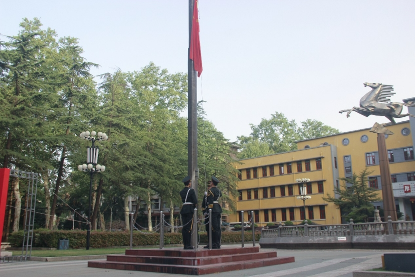 7时整,材料学院、材料示范学院、自动化学院师生代表着装整齐,神情肃穆地面向旗台。国旗护卫队迈着铿锵的步伐护送五星红旗入场,全体人员向缓缓升起的国旗行注目礼,伴随《义勇军进行曲》的旋律齐声高唱国歌。