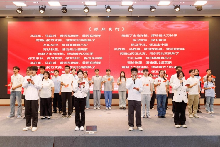 比赛尾声,全场齐声高唱《黄河大合唱》。“风在吼,马在叫,黄河在咆哮……”激昂的旋律响彻会场,将整场活动推向情感的高潮,也在铿锵歌声中凝聚起奋进的力量。