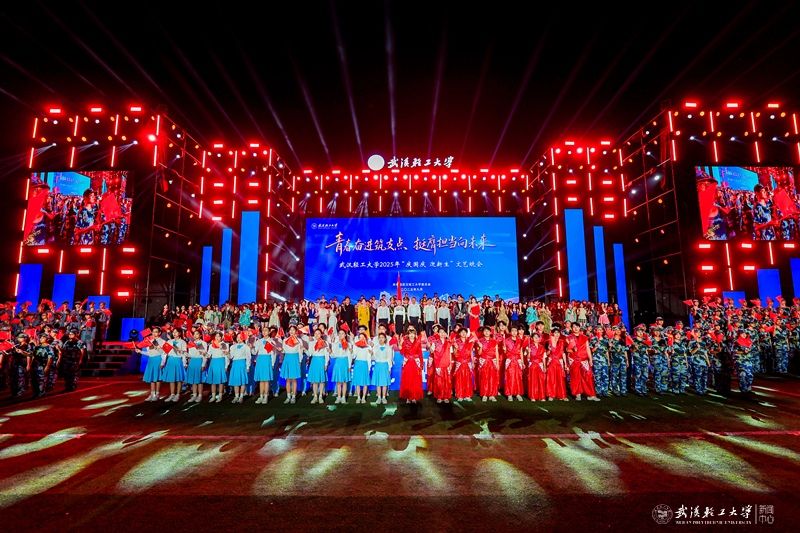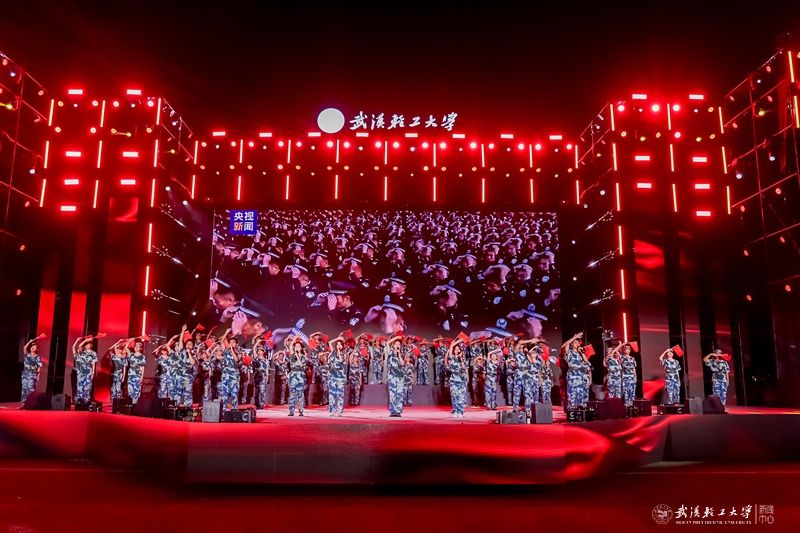 湖北民歌《妹娃要过河》唱响荆楚韵味,唤起中华民族共同的文化记忆。曾参与“九三”阅兵民兵方队的食品科学与工程学院2023级学生王吉祥,也通过视频为全体新生送上祝福。2025级新生以舞蹈《永不忘》踏歌登场,用赤诚的肢体语言,将历史记忆与青年担当在舞台深处交融共鸣。