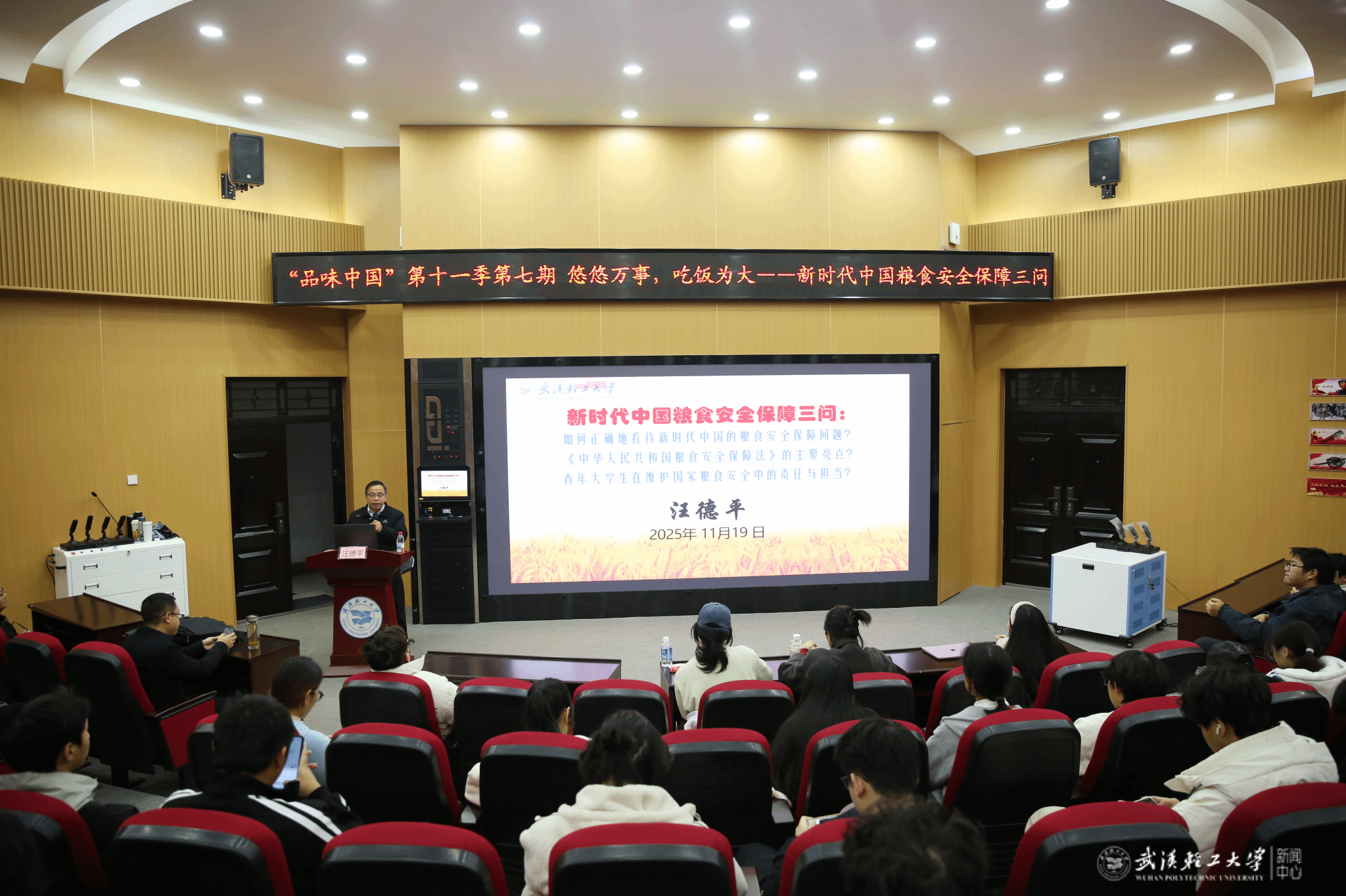 为深入贯彻国家粮食安全战略,提升青年学子粮食安全意识,11月19日晚,马克思主义学院汪德平教授做客“品味中国”第十一季第七讲,以“悠悠万事,吃饭为大——新时代中国粮食安全保障三问”为题,为200余名师生深度解析中国粮食安全这一核心命题。马克思主义学院党委书记王晓东、副书记潘春波、副教授杨华祥参加讲座,课程负责人唐俊峰主持。