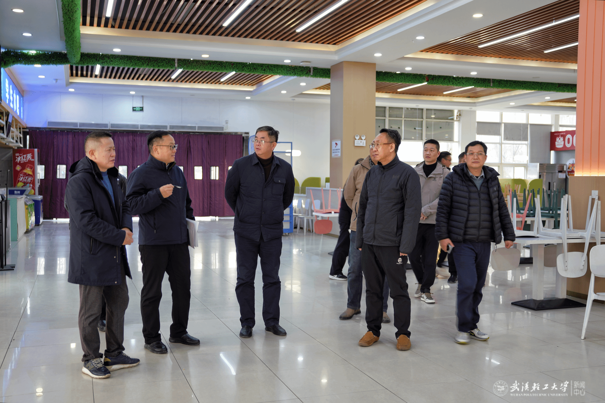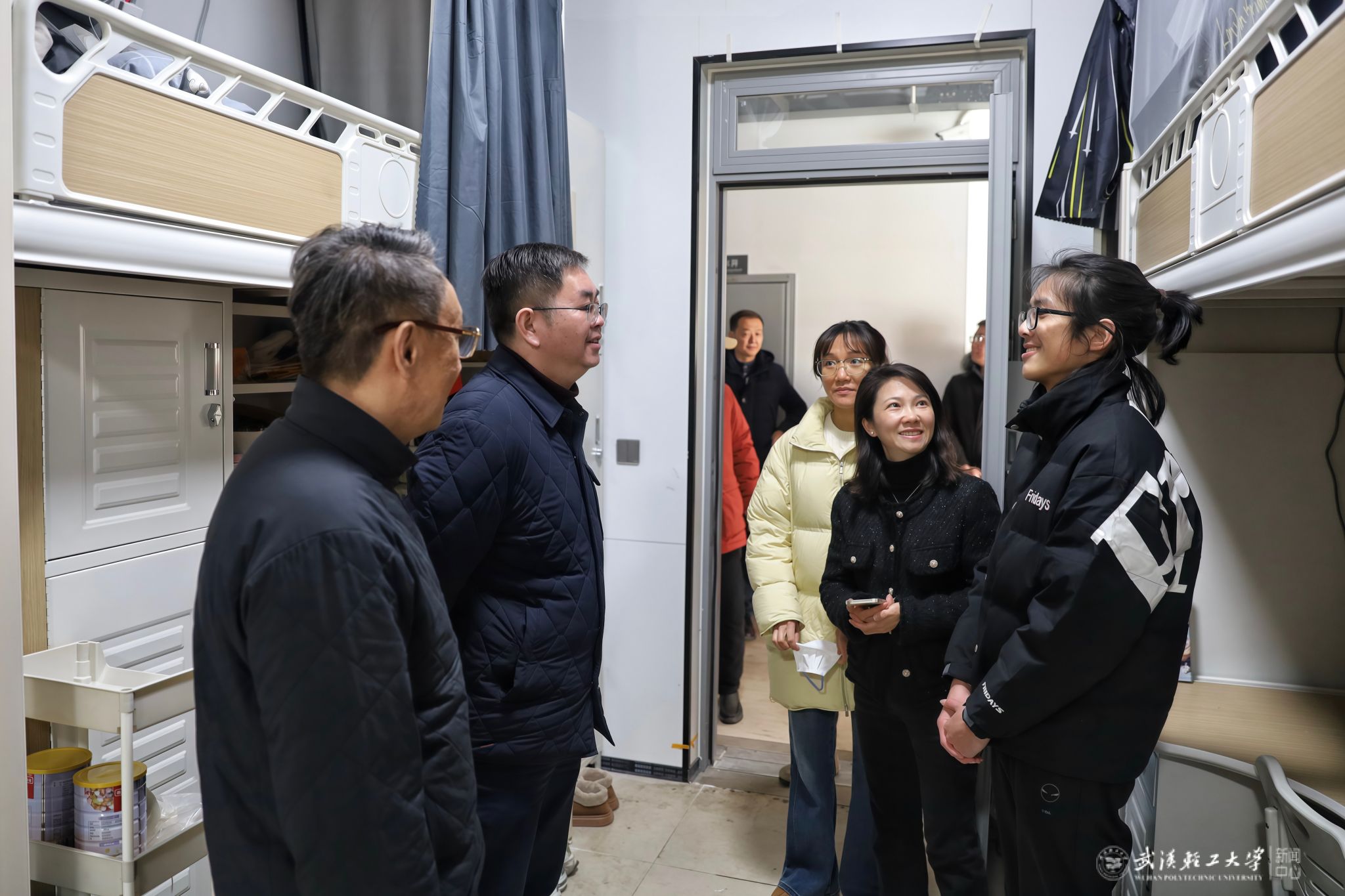 在梅花餐厅和金湖餐厅,汪海波实地查看窗口供应、食品储存与卫生管理制度落实等情况。他指出,食品安全是校园安全工作的重中之重,必须严把食材准入、环境卫生等关键环节,全力保障留校学生饮食安全,让同学们吃得安心、暖心。在东校区12号学生公寓,他与留校学生亲切交流,细致了解其学习生活情况,为同学们的成长历练鼓劲加油。汪海波强调,校园安全稳定是学校发展的前提和基础,必须时刻绷紧安全之弦,牢记安全底线,做实做细安全举措,及时化解风险隐患。要坚持以师生为中心,密切关注留校学生实际需求,扎实做好服务保障与人文关怀工作,全力营造平安、祥和、温暖的寒假校园环境,确保师生度过一个安心愉快的假期