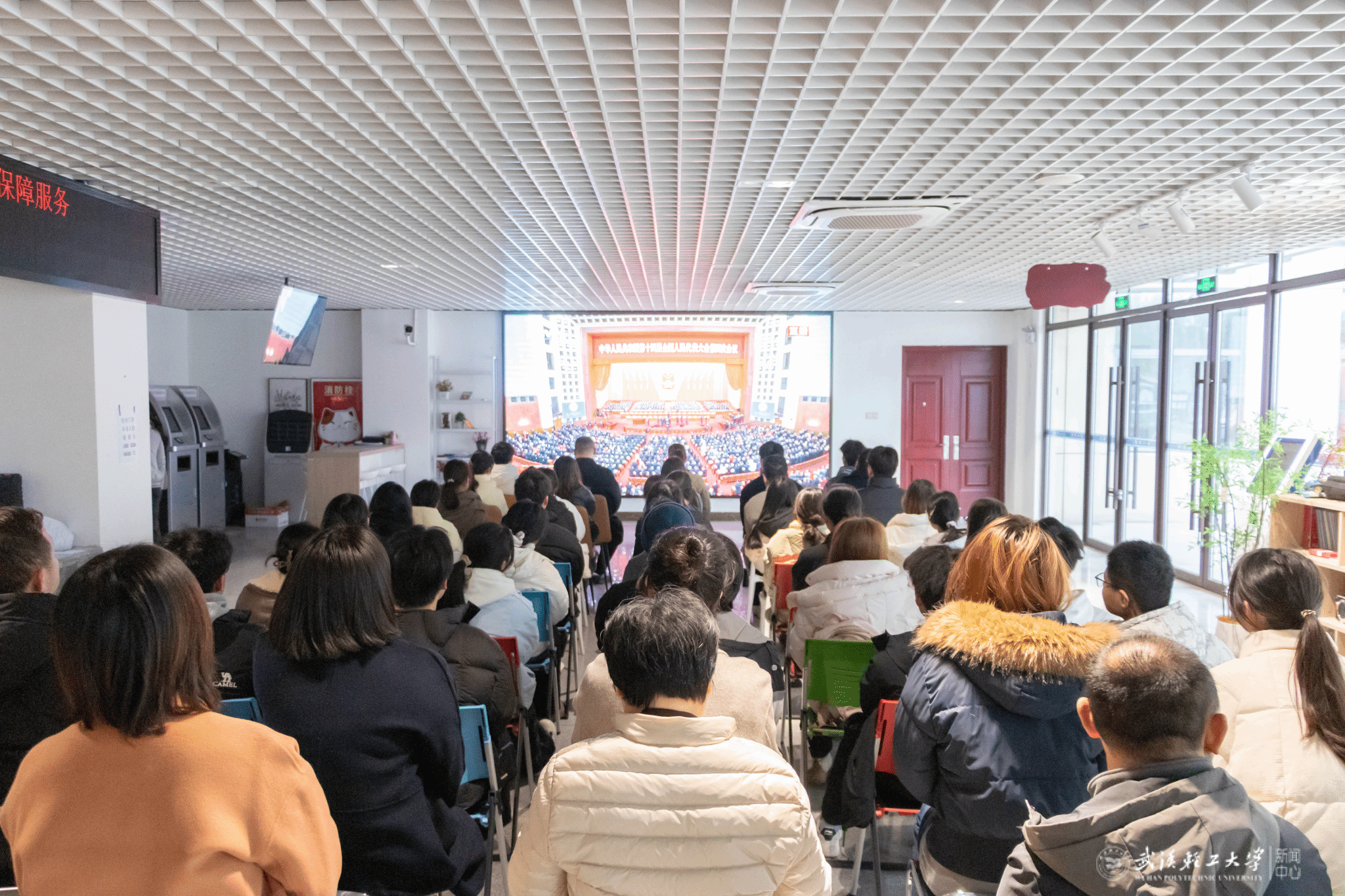 为深入学习贯彻全国两会精神,引导青年学子坚定理想信念,厚植家国情怀,3月5日上午,学工部(处)、校团委组织“卓越之星”、校院学生组织成员、各学院的学生党员及班团骨干等50余名学生代表,在金银湖校区“一站式”学生社区师生服务大厅集中收看了十四届全国人大四次会议开幕会。学工部(处)、校团委全体成员参加活动。