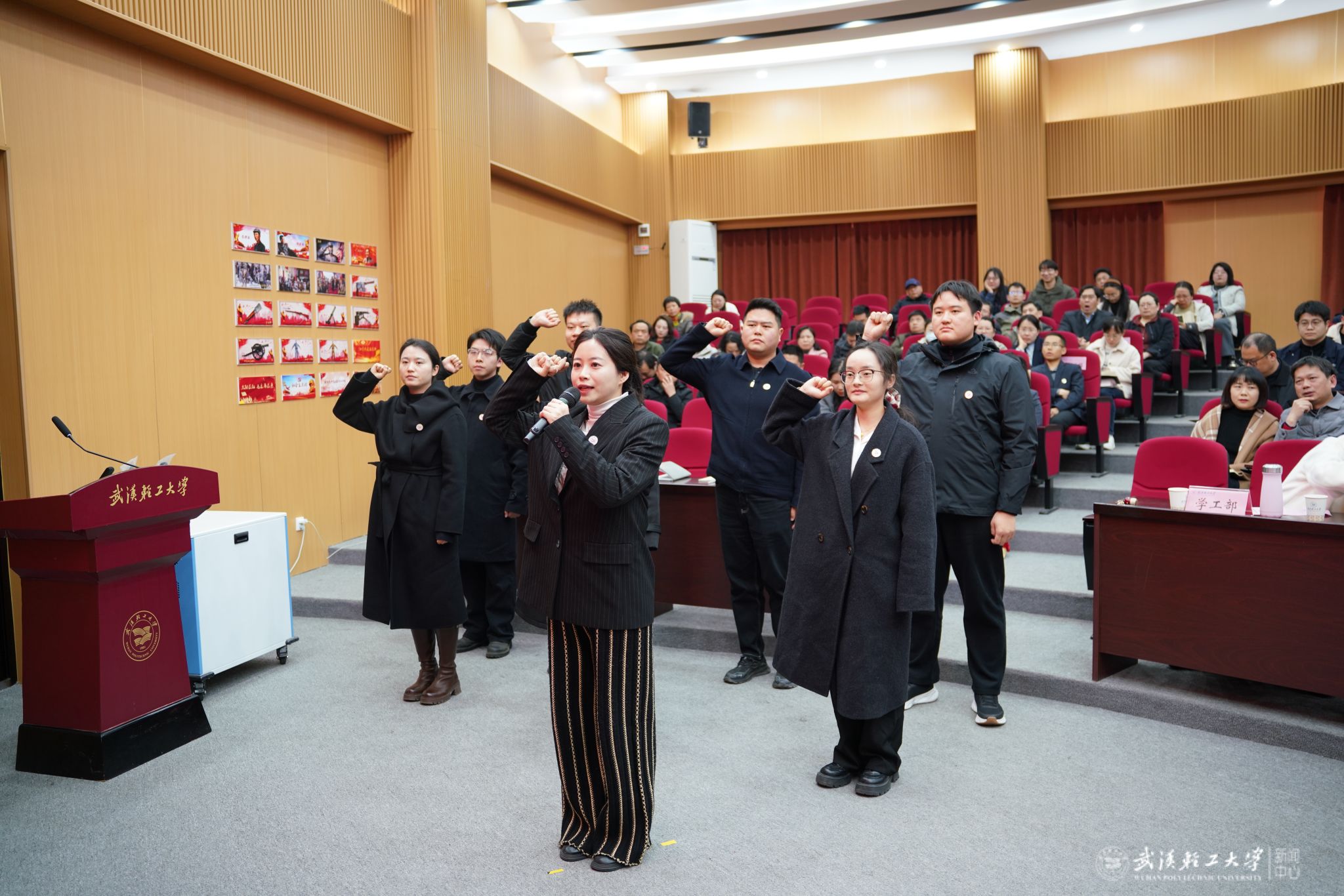 仪式上,2025年新入职辅导员作入职宣誓。学员代表熊智焱、张新娅、常铖、李妍作表态发言。