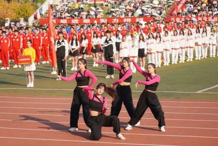 校啦啦操队和街舞社共同带来热力舞蹈,为运动会及运动员们加油助威。