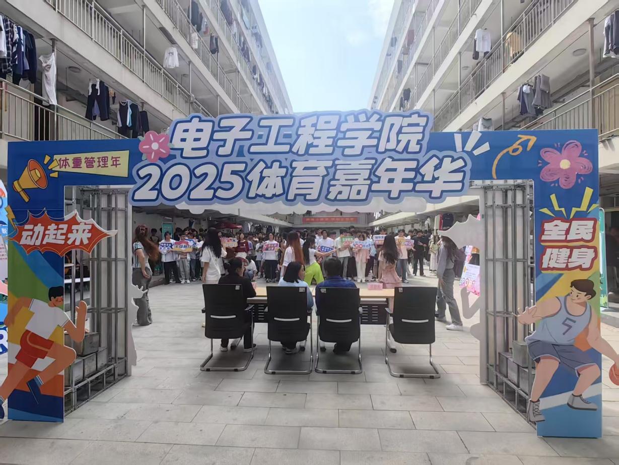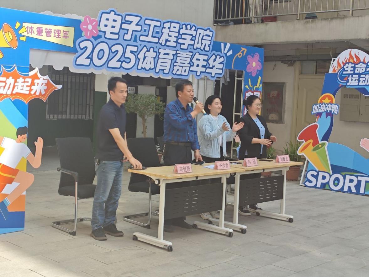 (通讯员:陈晓航)4月10日,电子工程学院2025体育嘉年华活动月在四栋“一站式”学生社区成功开幕。本届活动以“青春悦动,‘电’亮未来”为主题,旨在响应国家卫健委提出的全民健身和体重管理年号召,增强学院师生身体素质,丰富课余文化生活,鼓励大家积极参与体育锻炼,营造积极向上的校园体育氛围。电子工程学院党总支书记李少勇、副院长刘新灵、党总支副书记吕璟、学生科长郭健湘参加活动开幕式,活动全程600余名师生参与。