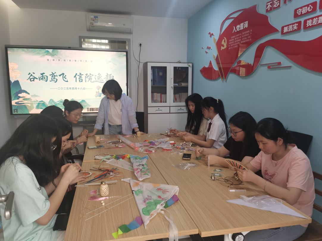 (通讯员:刘振华)在二十四节气“谷雨”到来之际,信息学院于“一站式”学生社区举办“谷雨鸢飞,信院逸趣”风筝节活动,师生在制作纸鸢、手绘风筝、编制竹风铃的过程中,解锁节气文化密码,让春日校园焕发生机。