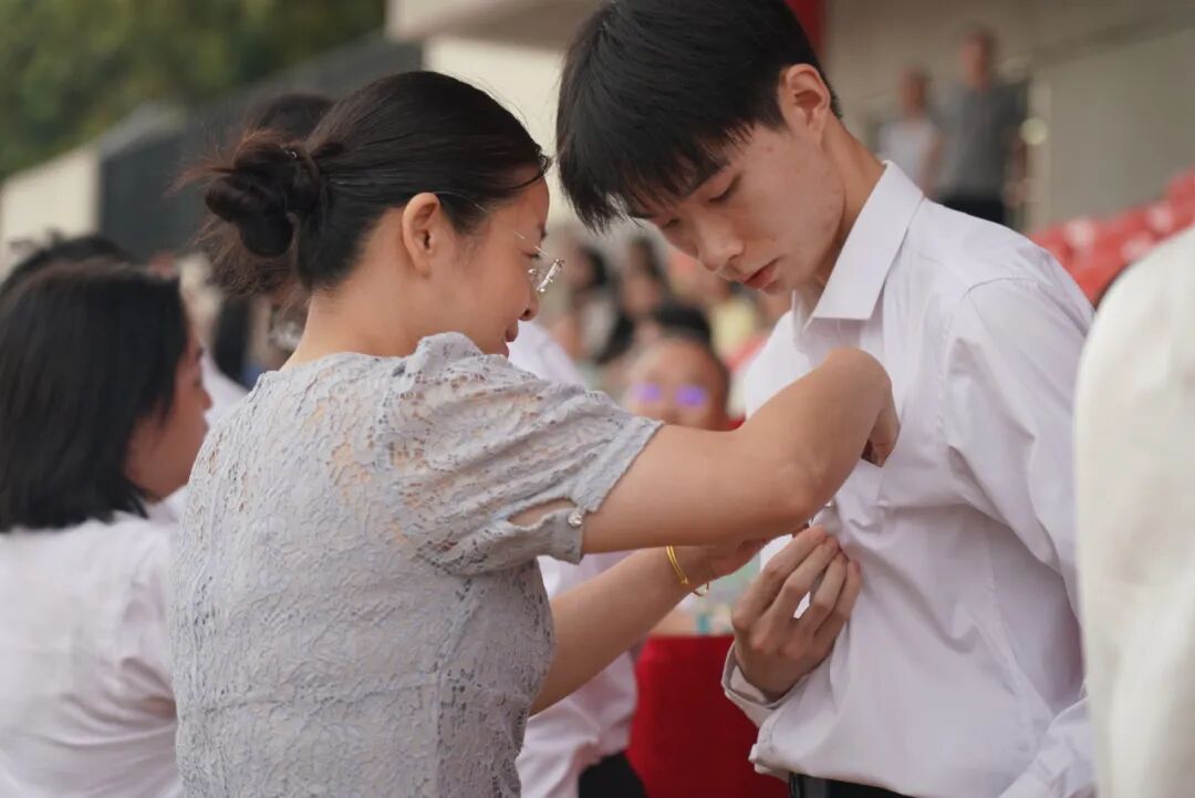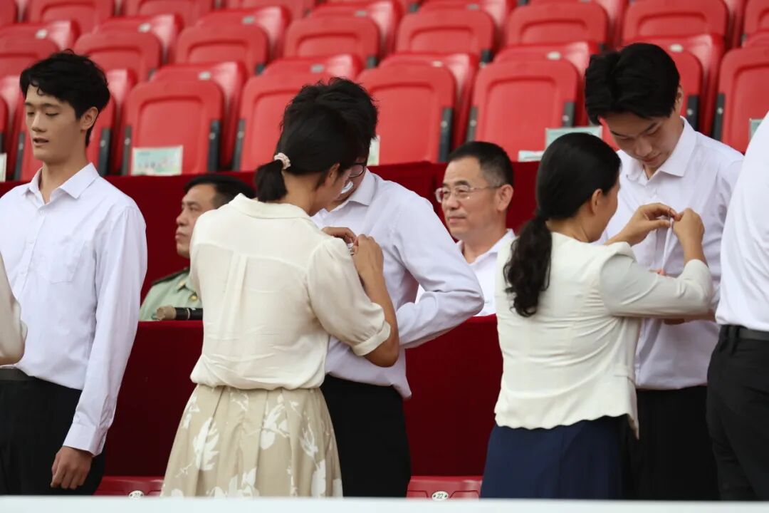 各学院领导为新生代表郑重佩戴校徽,殷殷嘱托间,勉励他们以行动践行校训初心,校徽轻缀新生衣襟,武软光荣传统在新征程中薪火相传。