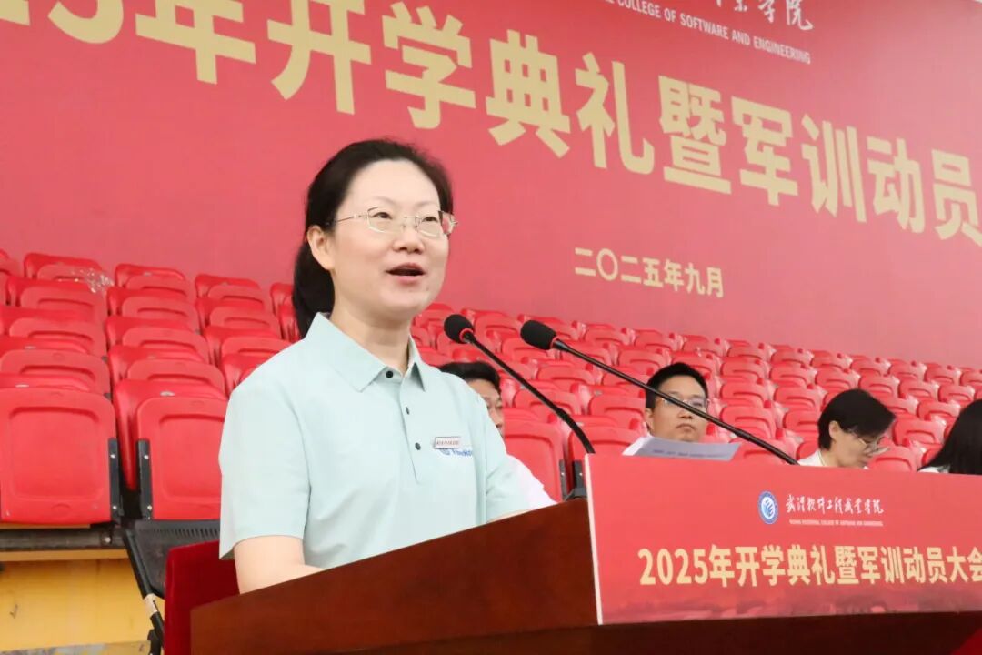 电子工程学院耿晶晶作为教师代表发言。她鼓励同学们:要敢于“归零”,做一名勤勉的求知者,在实践和探索中,将知识转化为真正属于自己的能力和本领;要乐于“厚植”,做一名坚韧的奋斗者,发扬“厚德、尚能”的武软精神;要善于“连接”,做一名全面的成长者,在收获专业技能的同时发展健全的人格、开阔的视野和一份深厚的情谊。