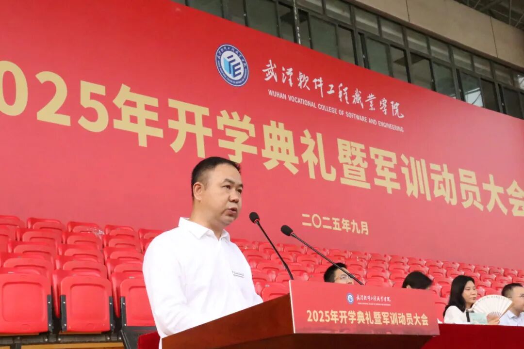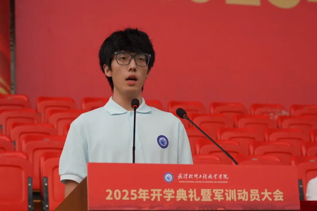 信息学院软件技术专业2510班岳炜超作为新生代表发言。他作为一名新时代青年,一个生于网络、长于技术的时代新人,渴望将个人理想融入时代发展的洪流,毫不犹豫地选择了武软,选择在这里追寻技术与梦想。