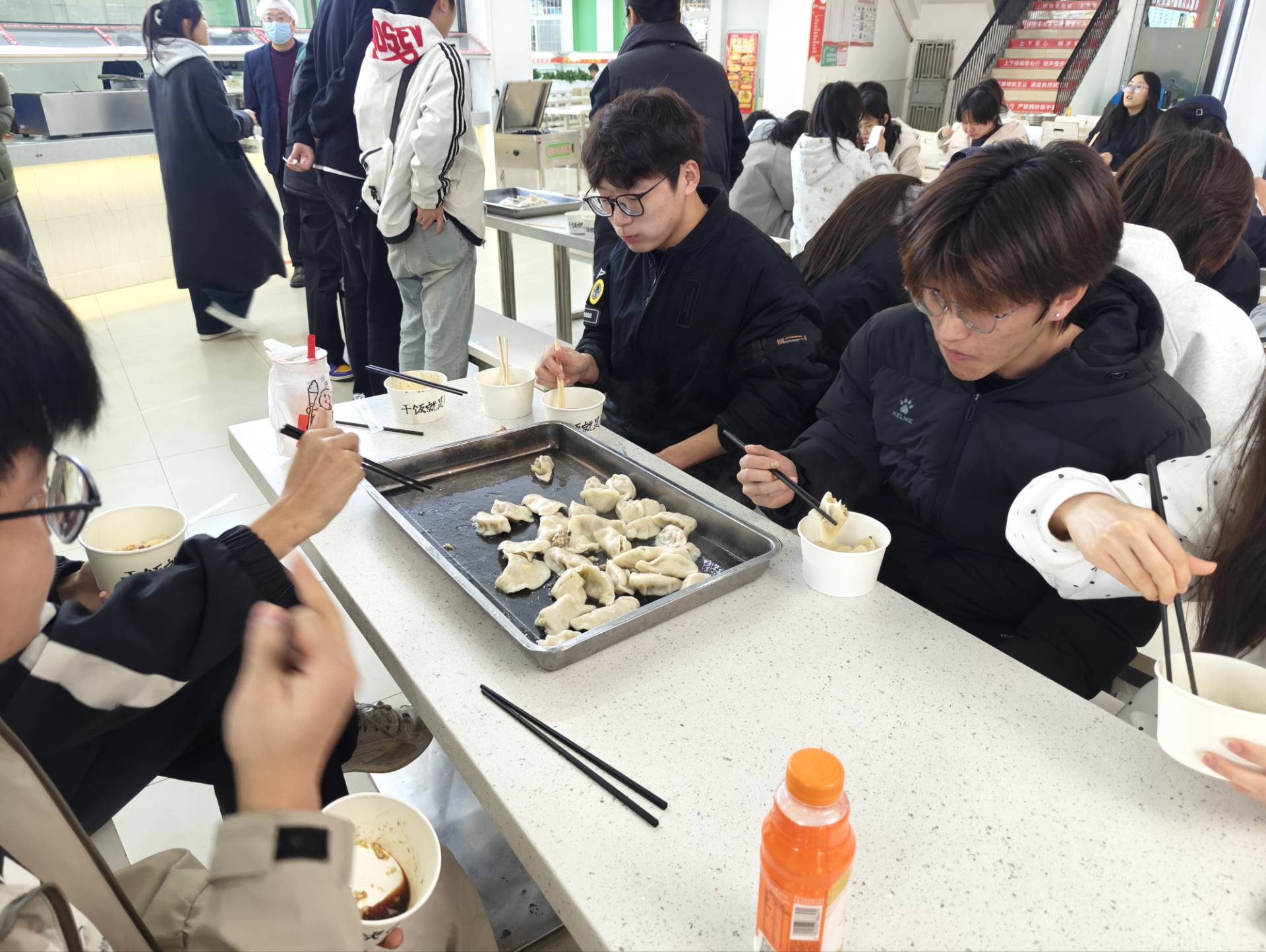 来自物联网2551班的乐熙泽同学表示,“以前只吃过家里包的饺子,这次跟着奶奶们学会了擀皮和捏花式饺子,特别有成就感。和老师、同学们围坐在一起吃饺子,感觉就像在自家一样温暖。”云计算2502班王利龙同学发出感慨,“今天亲手参与包饺子,才真正体会到冬至这个传统节日里藏着的烟火气和人情味。”