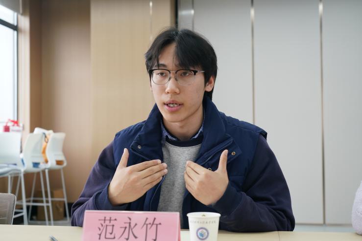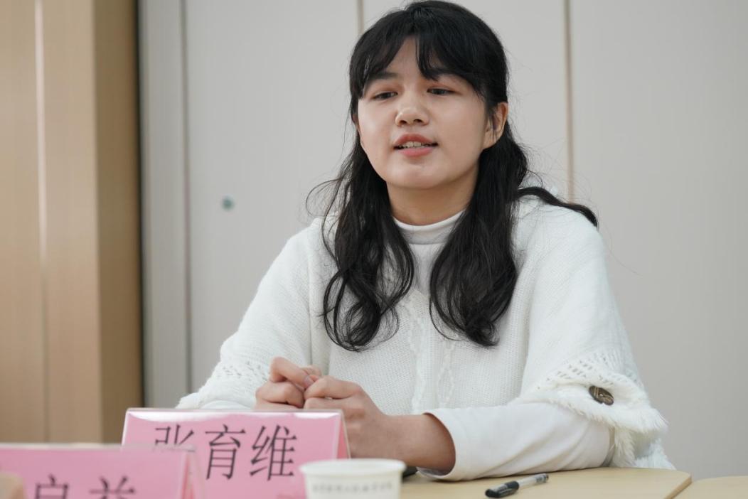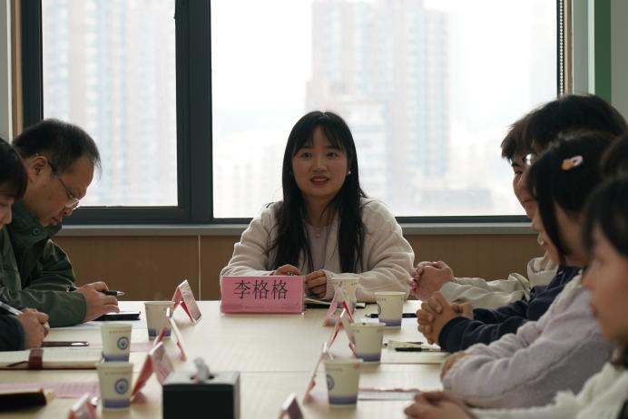 参加全国百名心理委员风采展的环艺2401杨静茹同学感谢学校培养,提到同学们对专业前景因AI冲击而焦虑。徐书记详细询问其经历与服务事迹,祝贺她获此殊荣,指出人类独特思维与人文素养是优势,学校会优化教学、加强引导。