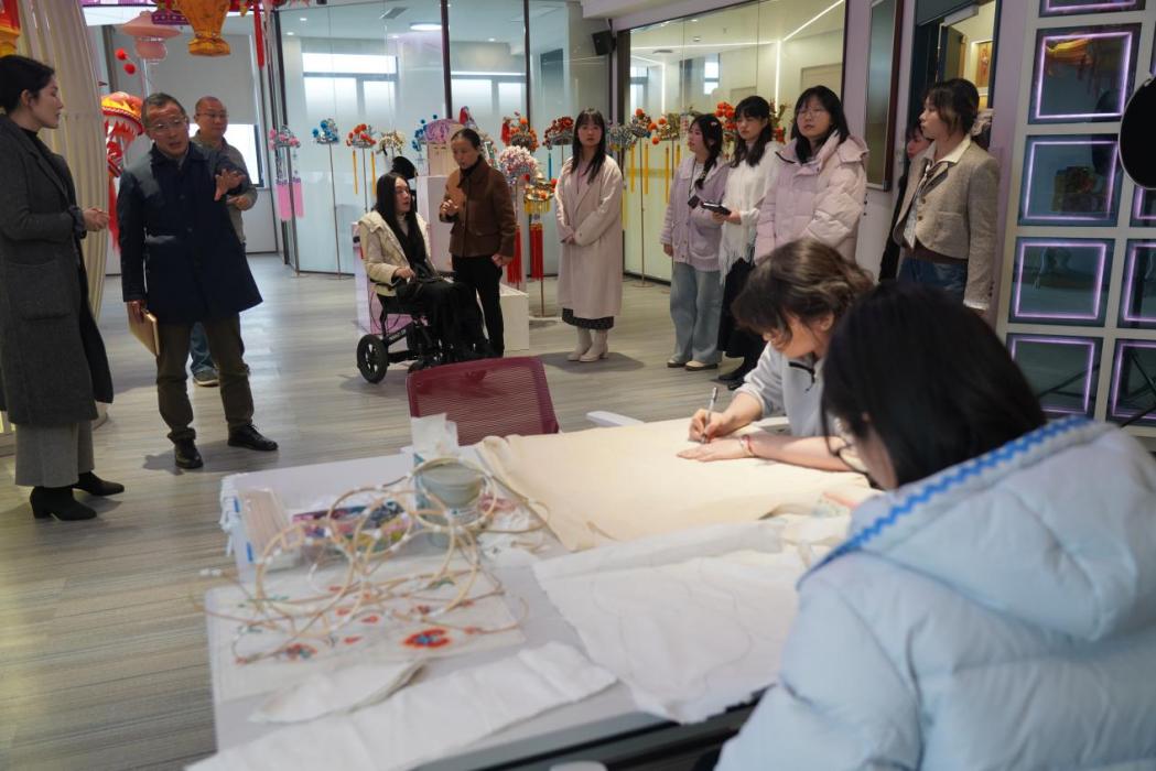 座谈会结束后,徐书记看望备赛国赛学生,了解合作企业项目式教学情况,参观文创产品工作室和荆楚灯彩工作室,观看学生制作灯彩过程,对艺术学院工作表示充分肯定。