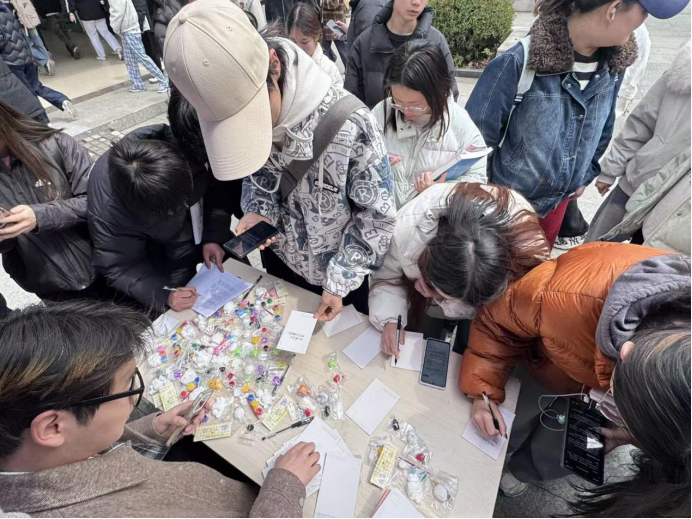 (参与活动的同学正在挑选礼品)