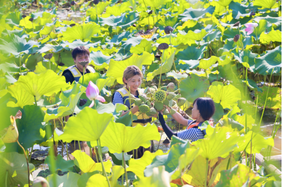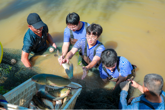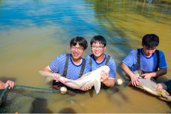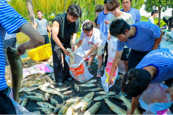 餐前,新生代表们在工作人员指导下体验捕鱼、采莲,鲜鱼、莲实以及学校提供的自产有机农产品由专业厨师处理好后分配到各学院灶台,成为迎新宴的主打食材。