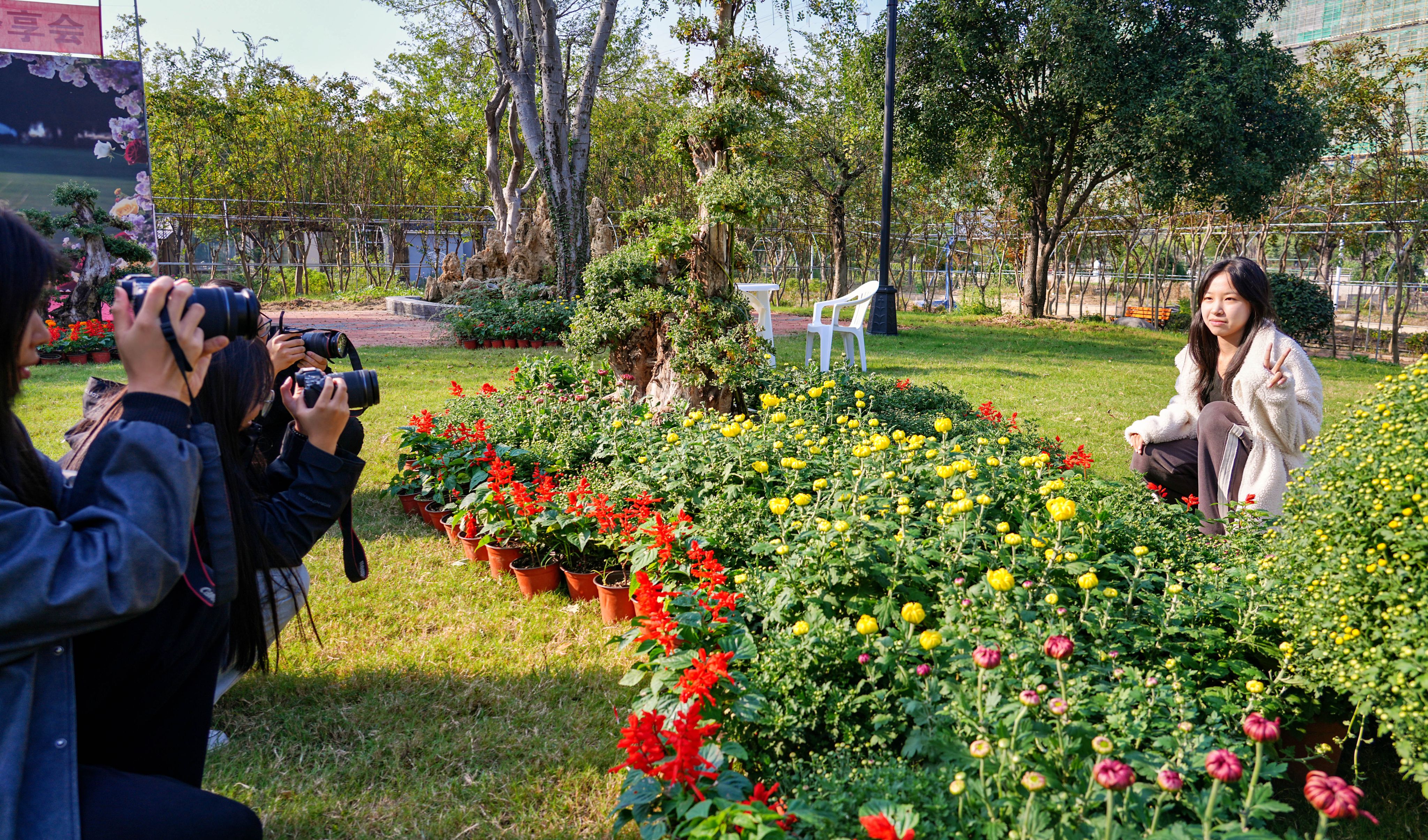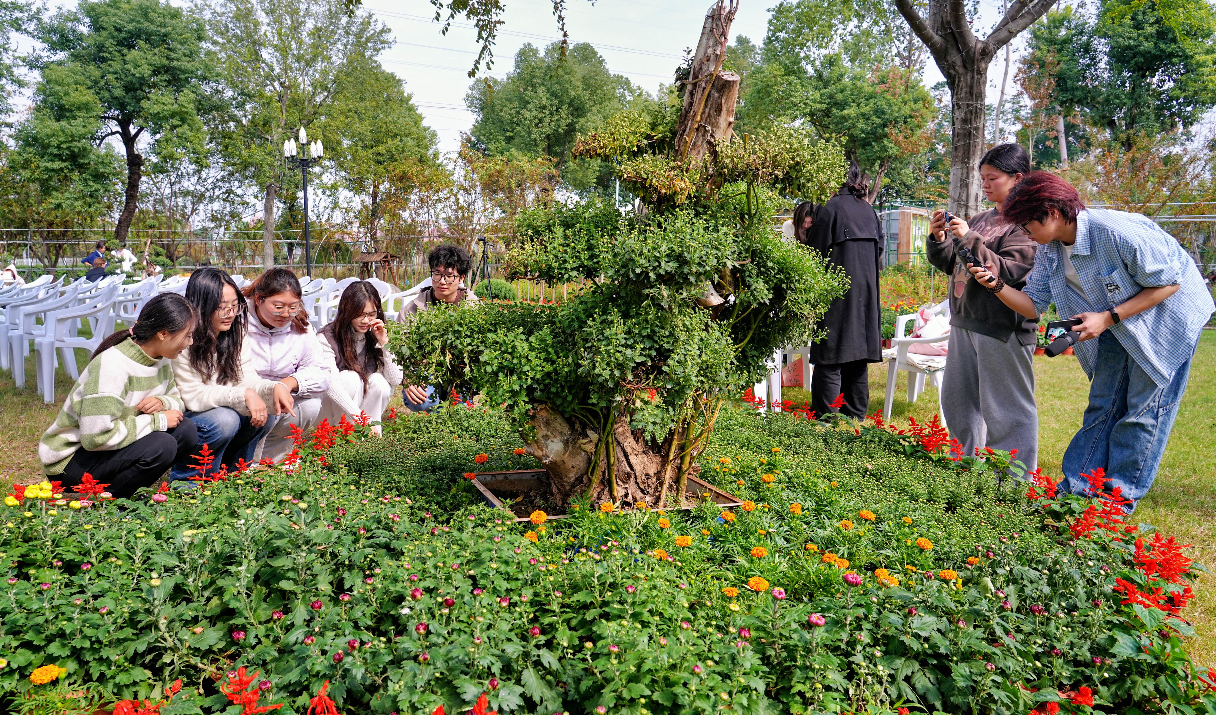 “从夏季育苗到秋季绽放,数月的精心培育,让每一盆菊花都成为传递知识的‘活教材’。”园林园艺学院常务副院长唐艳平介绍,除了品种选育、养护,学生们还参与了组合造景、菊展布局、菊花配置等活动执行,他们在全产业链实践中将理论知识转化为实操能力,综合素养显著提升。