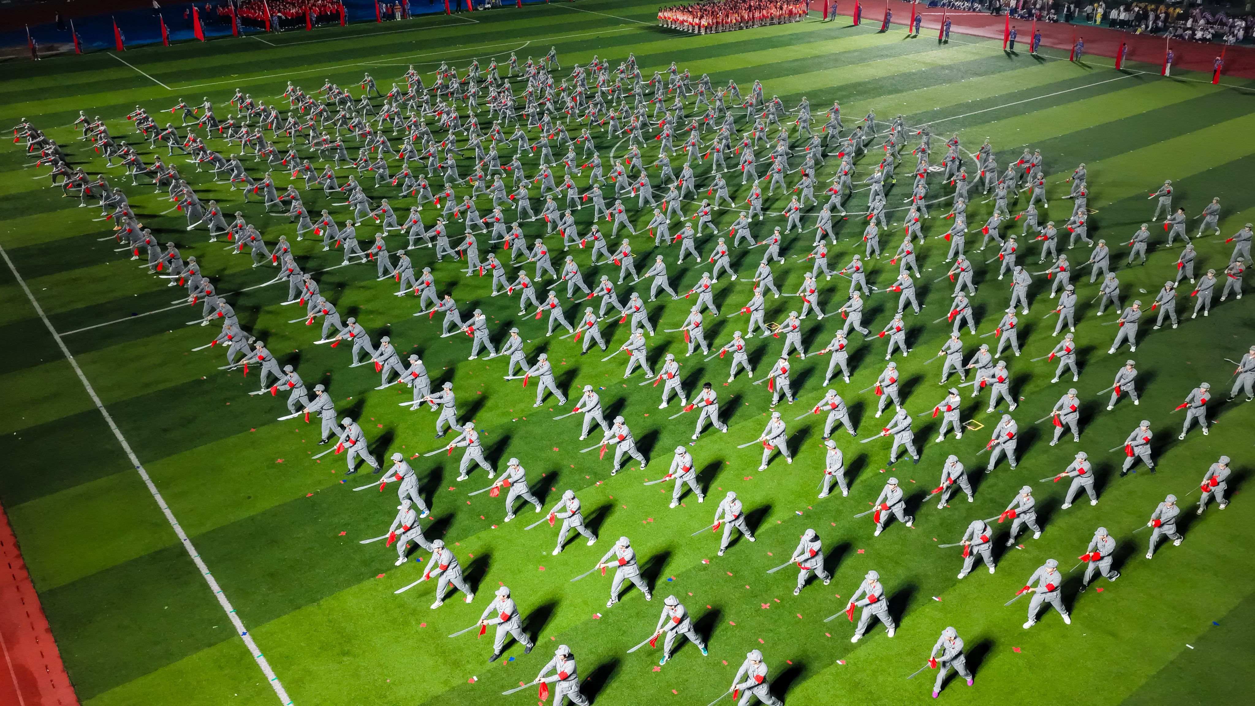 大合唱《复兴·颂》,师生们摆出“80”“1945-2025”字样,为纪念中国人民抗日战争暨世界反法西斯战争胜利80周年“写”下深情告白