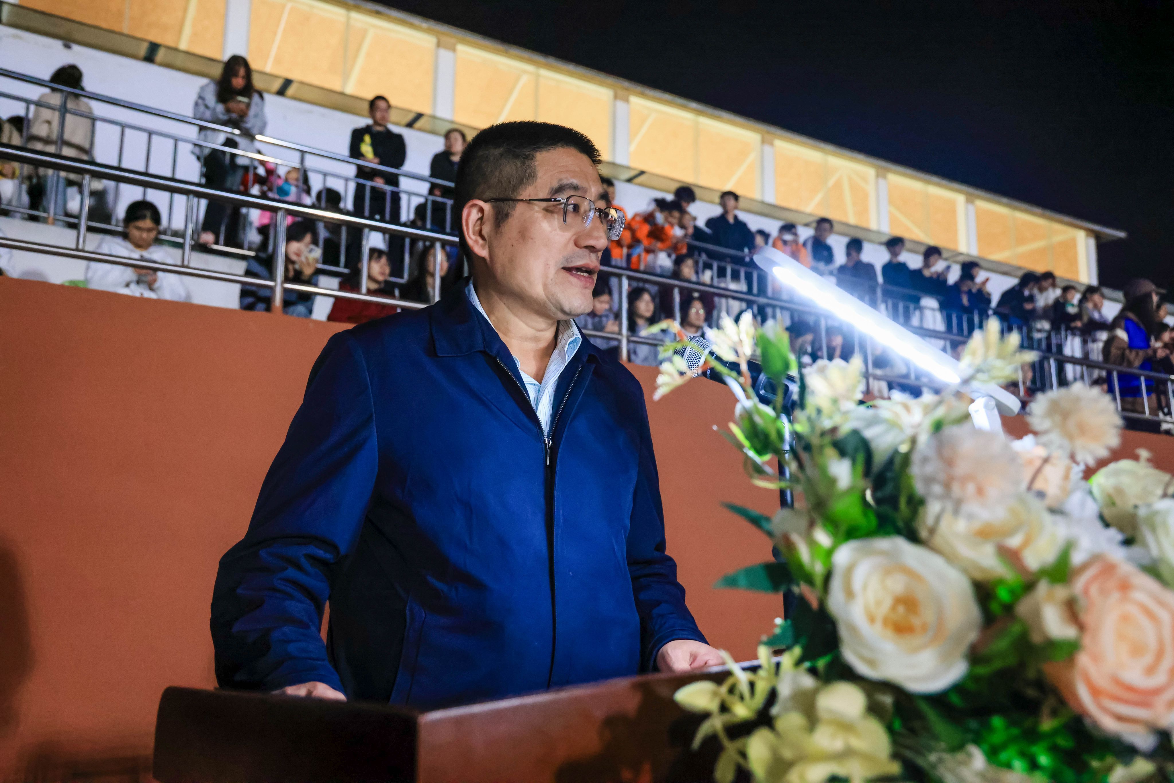 校党委书记、常务副校长、校体委主任江珩为秋季运动会开幕式致辞。他强调,体育是学校教育事业的基石,是践行“身心健康第一”育人理念的关键环节。学校始终高度重视体育工作,不断加大投入,完善体育设施,已陆续建成包括晨光体育场、健源体育场、森林运动场、阳光运动场、国球馆、云天游泳馆、环校园休闲健身步道在内的一批高标准、特色化体育场馆,为广大师生提供了丰富、优质的运动平台。他呼吁全校师生共同努力,将本届运动会办成文明、和谐、安全、精彩的体育盛会,让运动的激情点燃秋日的校园,让青春的力量在赛场上绽放。