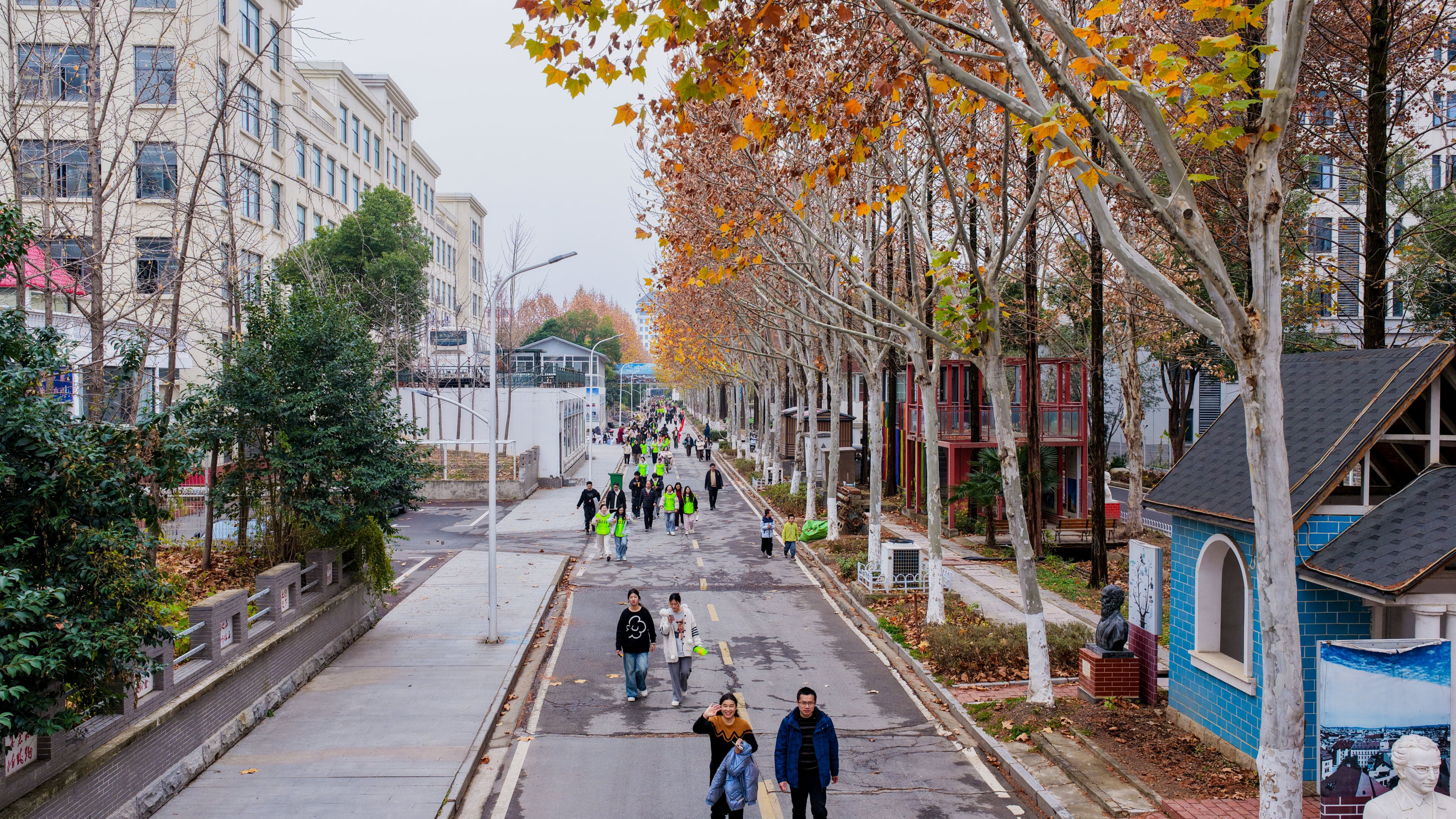 师生在诗画校园里奔跑