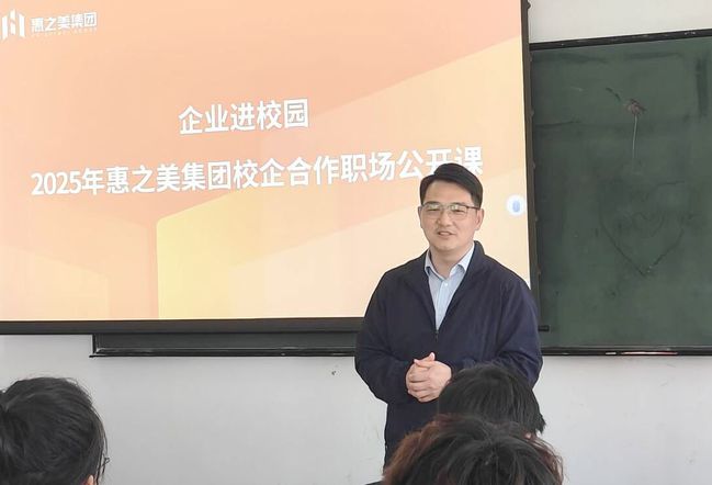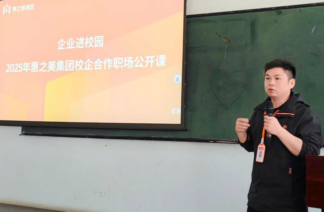 杨岭代表惠之美生活服务集团致辞。他表示,企业青睐有潜力的“种子选手”,此次公开课旨在搭建 “零距离” 沟通平台,让学生明晰用人标准与职业发展逻辑,为学生们的职业发展提供了明确的方向。