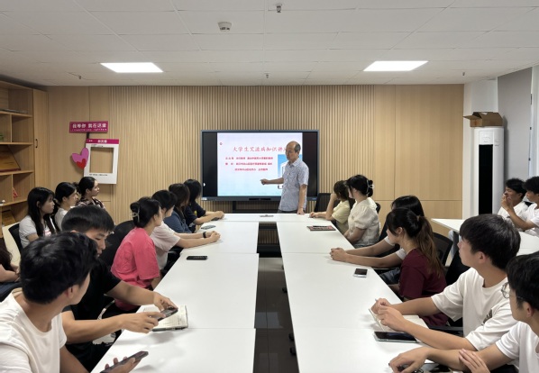 9月29日,由校医院院长沈鸿海主讲的“共抗艾滋 多病协防”主题健康知识讲座在学校光谷校区厚德书院“一站式”学生社区西四学生公寓举行。