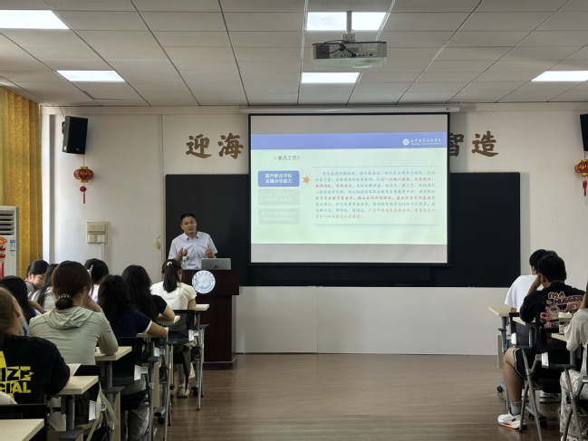 9月27日,副校长李仁平为商英24301和24302班上了一节生动的形势政策课,他以职业教育发展为主线,结合国情、省情和学校发展、学生成长成才等方面教育引导青春学子认识党的二十届三中全会的重要地位和全面深化改革的重大意义。他鼓励全体新生珍惜青春年华,努力学习,磨炼本领,积极投身国家各项改革发展事业中,争做能力过硬的时代新人。