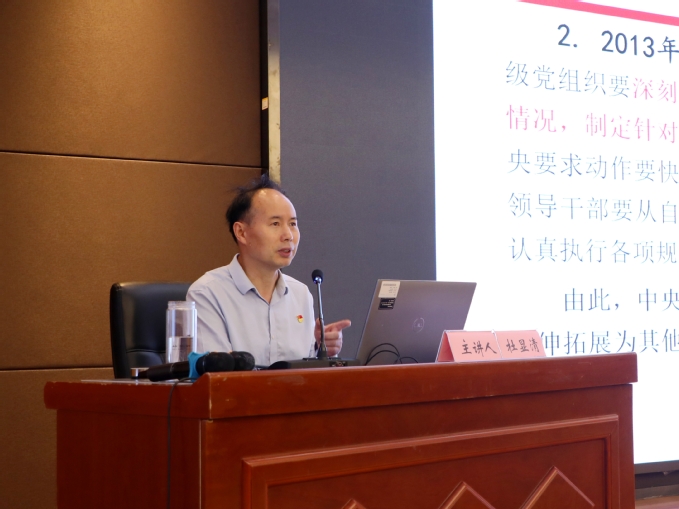 专家杜显清以《锲而不舍落实中央八项规定精神、推进作风建设常态化长效化》为题,从中央八项规定精神及其实施细则解读与案例分析、巩固落实中央八项规定精神成果努力方向等几个方面给学员进行了深刻的纪律教育和交流指导。