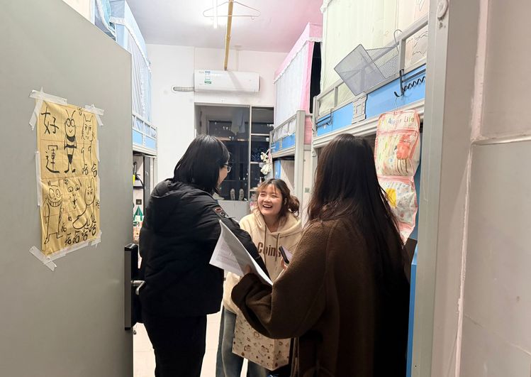 随后,教师们走进学生宿舍,与学生亲切交流,重点关注专升本学生复习备考情况,详细了解新学期学习安排、生活适应、作息调整等情况,耐心倾听学生需求,叮嘱大家合理规划时间、兼顾学业与身心健康。暖心的问候、细心的叮嘱,让学生们真切感受到学院的关怀与温暖。