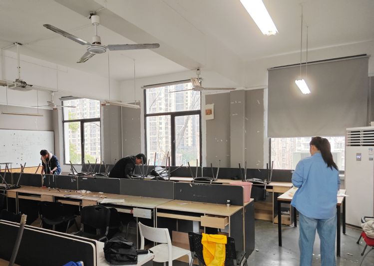 在教学楼内,教师们分工协作,有序开展全面清洁与安全检查工作。大家仔细擦拭窗台、整理讲台、清扫地面,逐项排查灯光、投影、电源等教学设备运行情况,对发现的问题及时登记并联系报修,在工作群实时反馈进度,以高效行动筑牢教学秩序保障线。