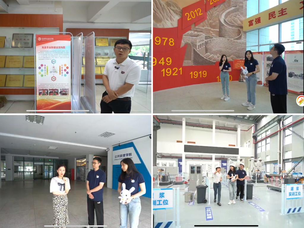 直播活动以南门为起点介绍了学校概况和直播安排。进入校门,跟随着校园游览车,主持人带领网友们一一浏览了教学楼、图书馆、体育场等学生学习活动的主要场所,感受了我校“一中心两基地”浓厚的红色氛围,初探了食品与生物工程学院科研实验室、建筑工程学院实训楼等特色实训基地,参观了花海、三食堂、天猫超市、宿舍楼等同学们最关心的生活、休闲区域。直播过程中,主持人还同网友们进行了多轮的抽奖互动。最后在学校励志桥上,两位主持人介绍了学校的国际教育概况和体育教学成果,直播活动圆满结束。