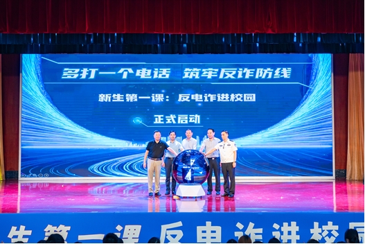9月12日上午,由市委政法委、团市委联合市公安局、市教育局、市委网信办、市学联共同主办的新生第一课:反电诈进校园活动启动仪式在学校文津校区大礼堂举行。各主办单位负责同志出席,我校党委委员、副院长朱志国应邀共同按下仪式“启动键”,来自12所在芜高校的学生代表近600人参与活动。