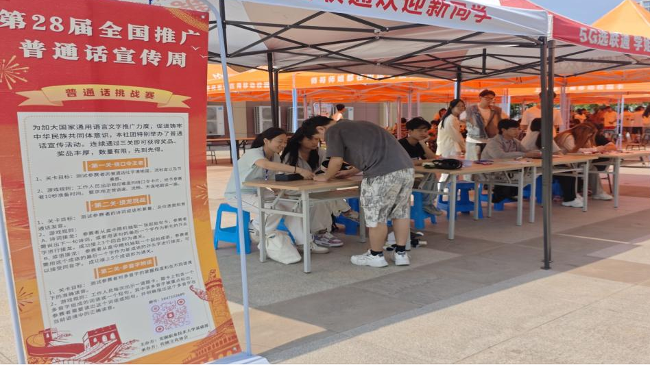 本次推普周活动内容丰富,形式多样,涵盖了语言实践、知识竞赛、文化展示多个维度。传统文化协会的同学以“趣味闯关学普通话”为线索,设置绕口令,诗词、成语接龙,多音字句子认读三关游戏,吸引了众多师生参与。大家在轻松氛围中提升了普通话应用能力,深切地感受到了普通话的语言魅力。