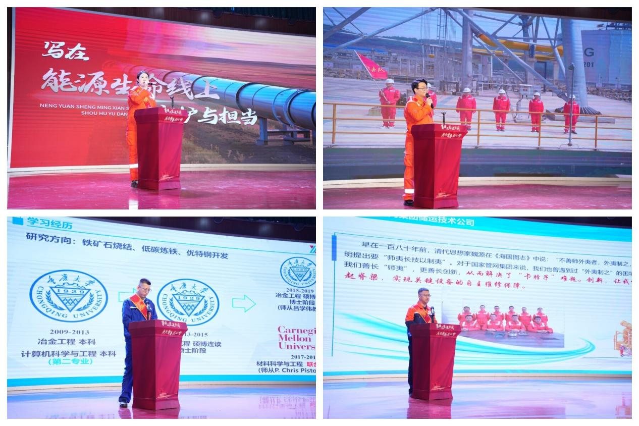 在宣讲环节,4位优秀劳模代表,来自国家管网集团一线的卢力源、薛淋双、黄兆亮,及芜湖新兴铸管公司的魏瑞瑞,先后分享了他们在“北气南下”能源大通道建设、西气东输四线建设、管道钢铁铸造等世纪工程中攻坚克难、创新创效的奋斗故事。
