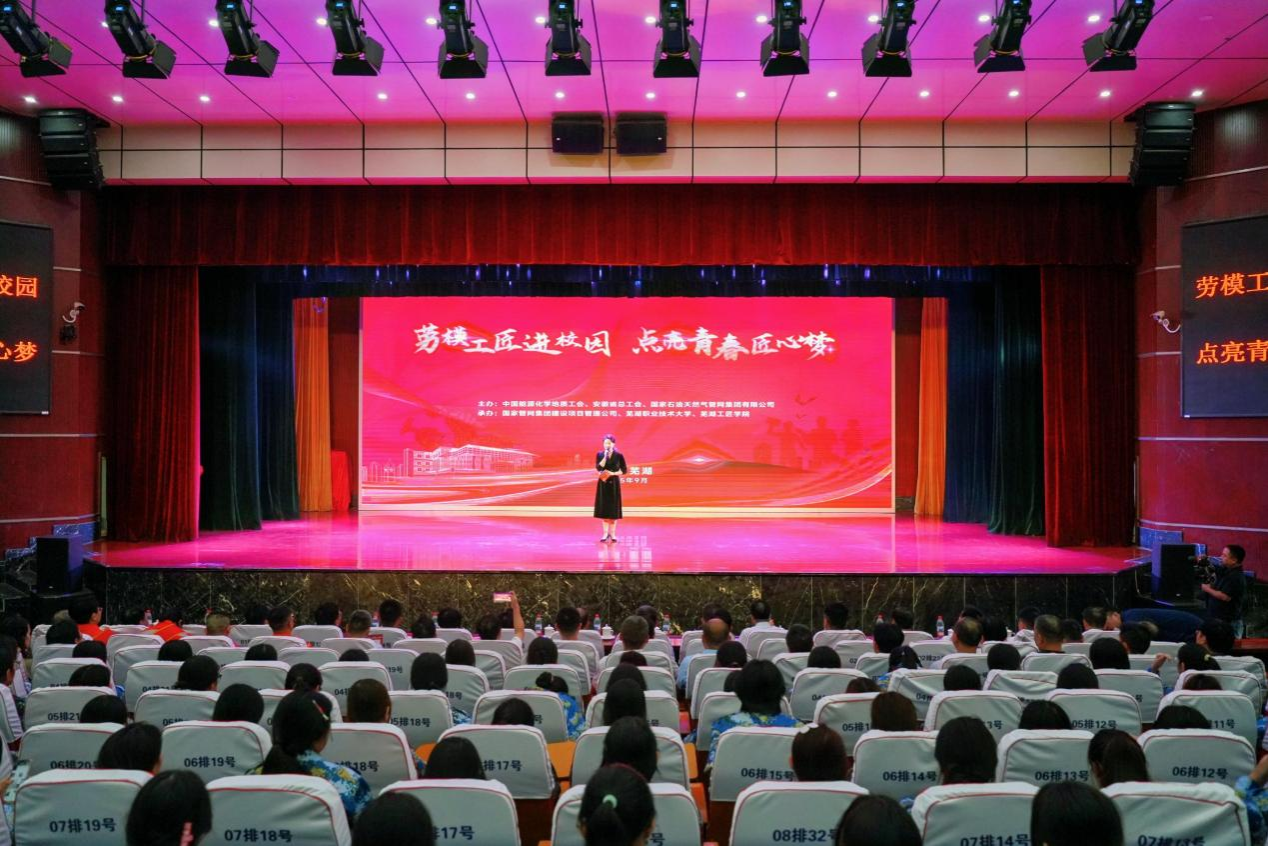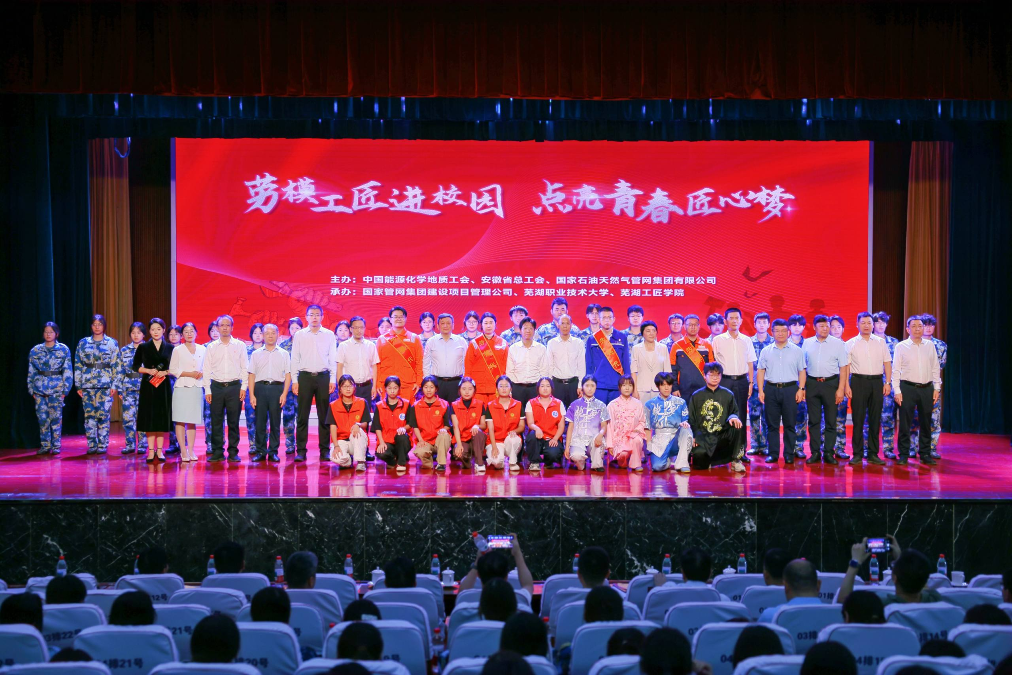 9月19日下午,由中国能源化学地质工会、安徽省总工会、国家石油天然气管网集团主办,我校承办的“北气南下”能源大通道南段工程和西气东输四线天然气管道工程全国引领性劳动和技能竞赛总结系列活动之“劳模工匠进校园·点亮青春匠心梦”宣讲活动在文津校区大礼堂举行。中国能源化学地质工会主席蔡毅德,国家石油天然气管网集团党组副书记叶国华,安徽省总工会二级巡视员吴海明,市人大常委会副主任、市总工会主席董萍,我校党委书记王志鹏,“北气南下”能源大通道南段工程沿线河北、山东、江苏省总工会,西气东输四线沿线新疆维吾尔自治区、甘肃省、宁夏回族自治区总工会,以及国家管网集团建设项目管理公司、西气东输公司有关负责同志出席活动。450余名大一新生现场聆听劳模故事,感受央企劳模带来的“开学第一课”的榜样力量。