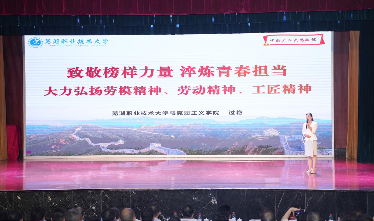 活动中,我校马克思主义学院教师过艳以《致敬榜样力量 淬炼青春担当》为题,围绕习近平总书记在庆祝中华全国总工会成立100周年及全国劳动模范和先进工作者表彰大会上的重要讲话精神,为同学们讲授了一堂生动的“中国工人大思政课”,引导新生学子深刻领会劳模精神、劳动精神、工匠精神的时代价值,立志在技能成才、技能报国的道路上勇毅前行。