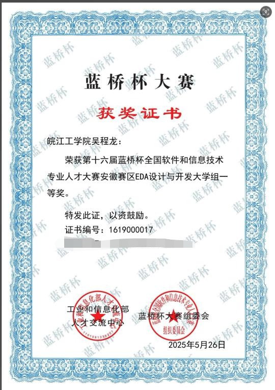 一直以来,皖江工学院高度重视学生实践能力与创新精神的培养,积极组织学生参与各类学科竞赛,为学生搭建广阔的发展平台。本次蓝桥杯竞赛中,电信工程学院秉持“提前谋划、精心组织、普遍训练、模拟竞赛、重点突破”的原则,从省赛到国赛一路披荆斩棘,实现了从量的积累到质的飞跃,最终在国赛中斩获佳绩。学院在专业教学中注重理论与实践结合,通过开展针对性的竞赛培训与指导,助力学生提升专业技能,在各类赛事中屡创佳绩。此次吴程龙同学在蓝桥杯全国总决赛中获奖,是学院人才培养成果的又一有力佐证。