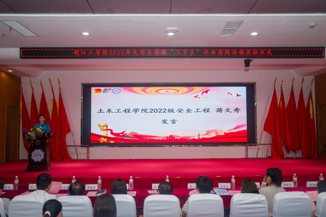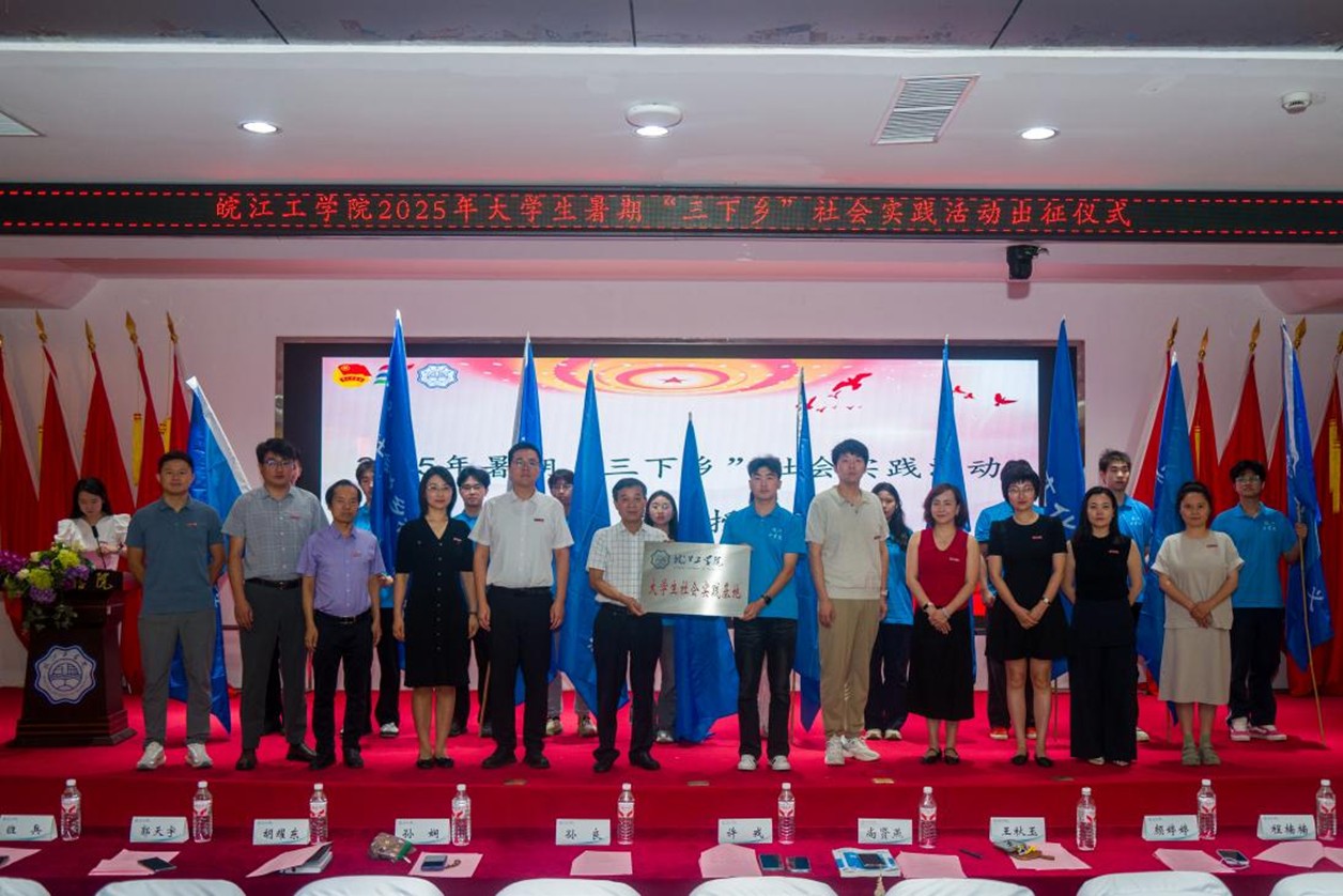6月25日上午9点,2025年大学生暑期“三下乡”社会实践活动出征仪式在皖江工学院霍里山校区图书馆报告厅顺利举行。本次活动以"青春为中国式现代化挺膺担当"为主题,旨在引导青年学子深入基层、服务社会,为中国式现代化建设贡献青春力量。校党委副书记、副校长孙良,教务部常务副部长孙娴,学生工作部副部长许戎,马克思主义学院副院长胡耀东,校团委书记、学工部副部长尚贤燕,校团委副书记、院务部副部长郭天宇,以及各二级学院党总支副书记、分团委书记、指导教师代表及各实践团队的学生骨干参加了此次活动。