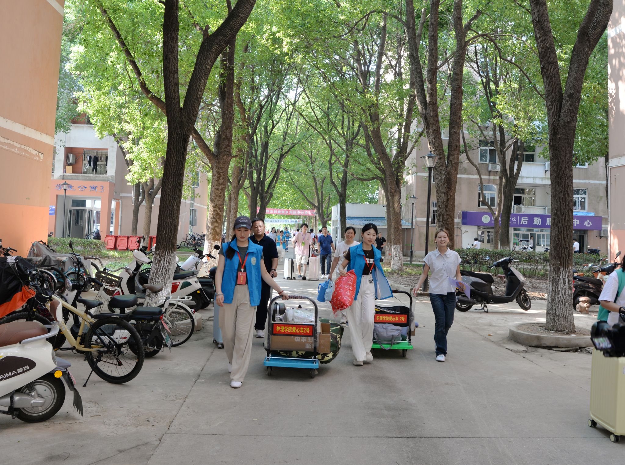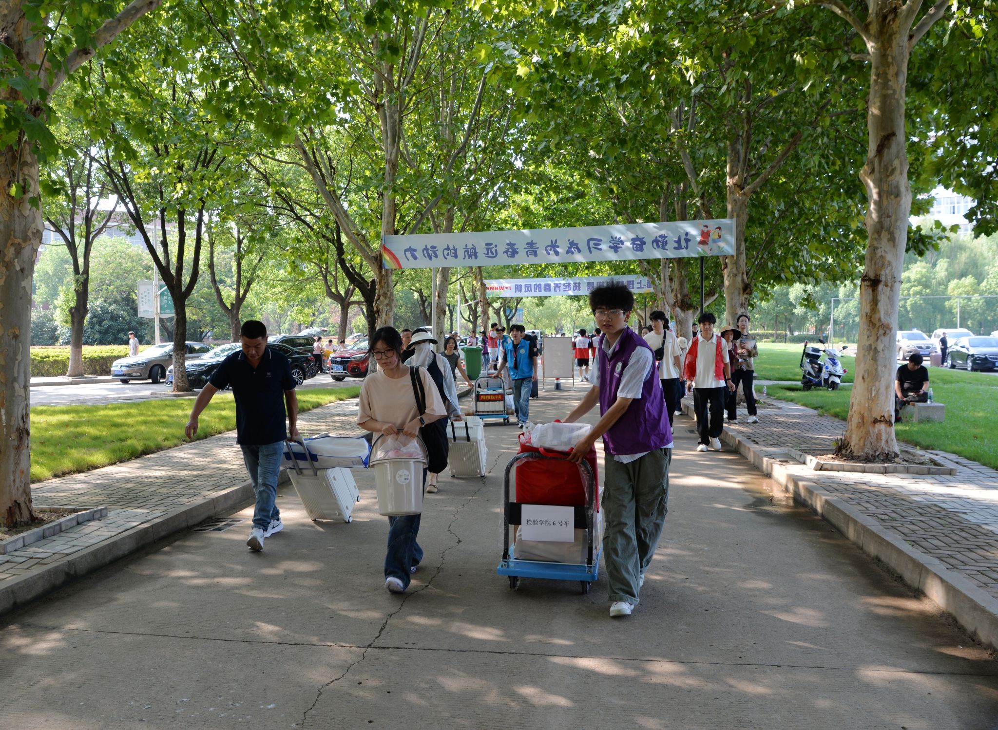 在校园内,随处可见忙碌而温暖的志愿者身影。他们早早守候在校园入口、报到点、宿舍楼下等关键位置,化身新生的“校园向导”与“贴心帮手”,点对点、人对人地帮助新生搬运行李、讲解报到流程、介绍校园环境、办理报到手续和入学身份核查……为新生提供“一站式”服务。