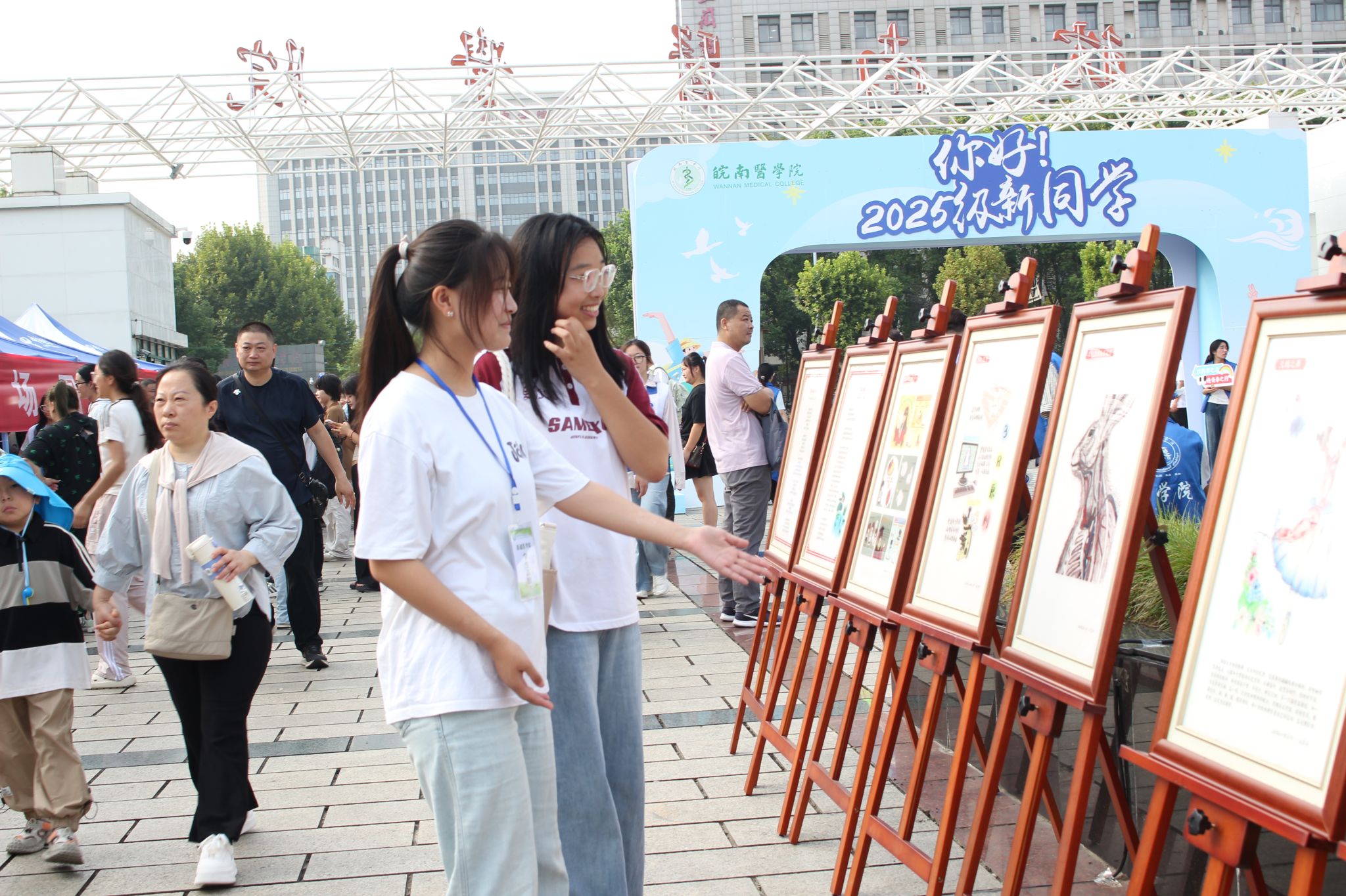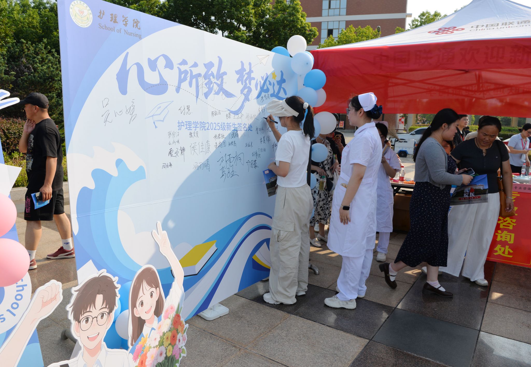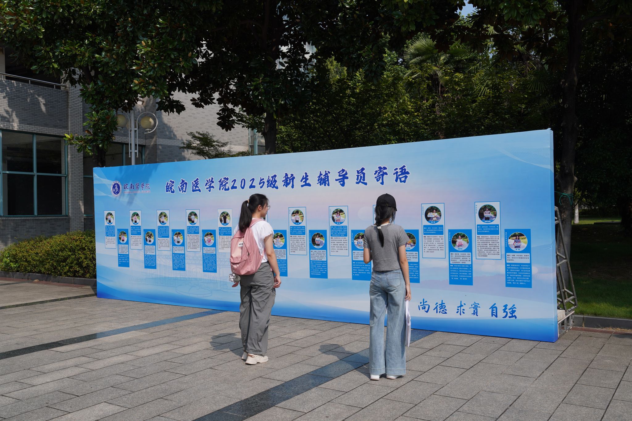 各二级学院根据自身学科特色、学院文化等特点,设计了充满创意的迎新活动,拉满新生入学的“仪式感”:麻醉学院以“时间”为主线,组织新生写下致五年后的电子信函,以文字封存医学初心,缔结珍贵的“时间胶囊”;护理学院设立护理主题签名纪念墙,新生进行签名并合影,共筑职业信仰;药学院将专业思政与迎新相结合,展示学生手工制作的标本作品,并为每位新生送上定制香囊;基础医学院举办基础医学优秀人文作品展,进一步激发学生的学习兴趣;公共卫生学院在新生报到处展示部分师生奖项证书,以此激励学生在人生新的“赛道”上跑出自己最好成绩;部分学院还设置具有学院特色的专属打卡照片框,为新生家庭定格初入学院的珍贵瞬间。