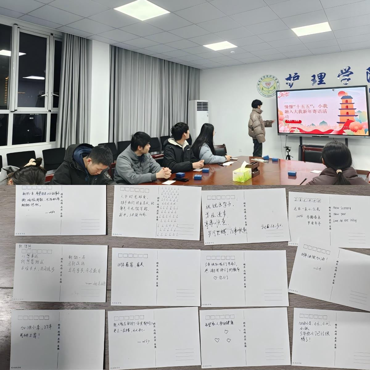为引导学生将个人发展紧贴时代脉搏,12月30日晚,学院在社区内开展了“憧憬‘十五五’——小我融入大我”主题寄语活动。同学们通过书写明信片、线上留言等多种形式,在新年到来之际表达对“十五五”时期国家发展的美好祝愿。同时,表达对同学、母校的美好祝愿。活动共收集寄语作品100余份,进一步激发了学子们将专业学习与国家需要相结合的责任感与主动性。