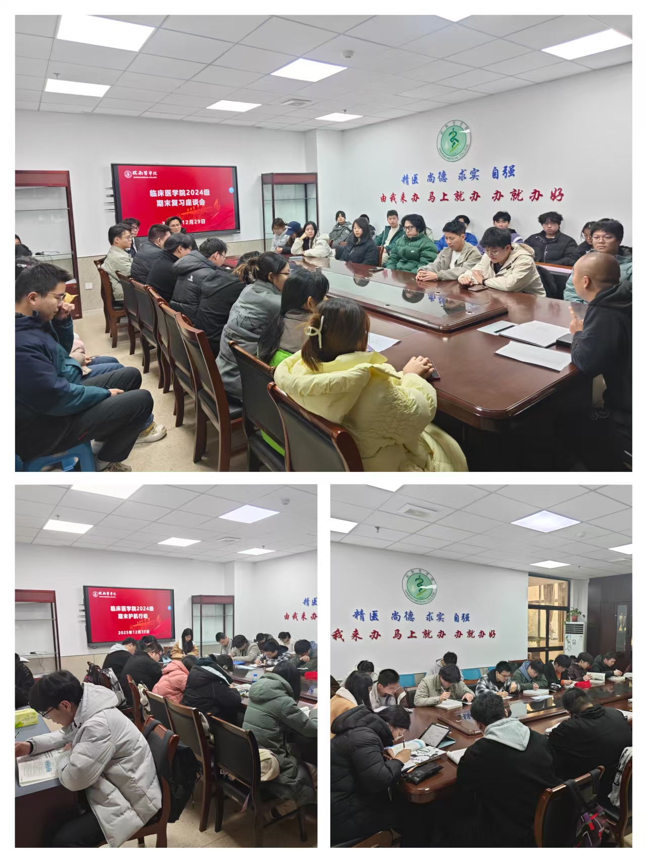 为帮助学生做好期末迎考的准备,提高学习效率,近期,临床医学院2024级组织朋辈帮扶经验分享交流会、期末复习座谈会、期末加油站打卡等期末护航系列活动。
