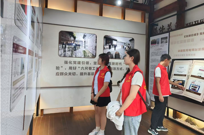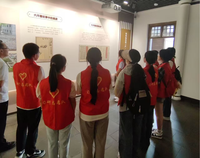 六尺巷片区总占地面积约5万平方米,总建筑面积约2万平方米。团队一行分别参观了吴氏文化展馆、廉洁文化展馆、六尺巷工作法展馆、礼让文化展馆等。在吴氏文化等展馆,来自光电信息工程专业2401班的郝玉洁和李琦同学为大家生动讲述了清代张吴两家“让他三尺”谦和礼让的历史典故,号召同学们坚定文化自信,积极传承和践行中华民族优秀传统美德,为创造美好和谐校园作出贡献。