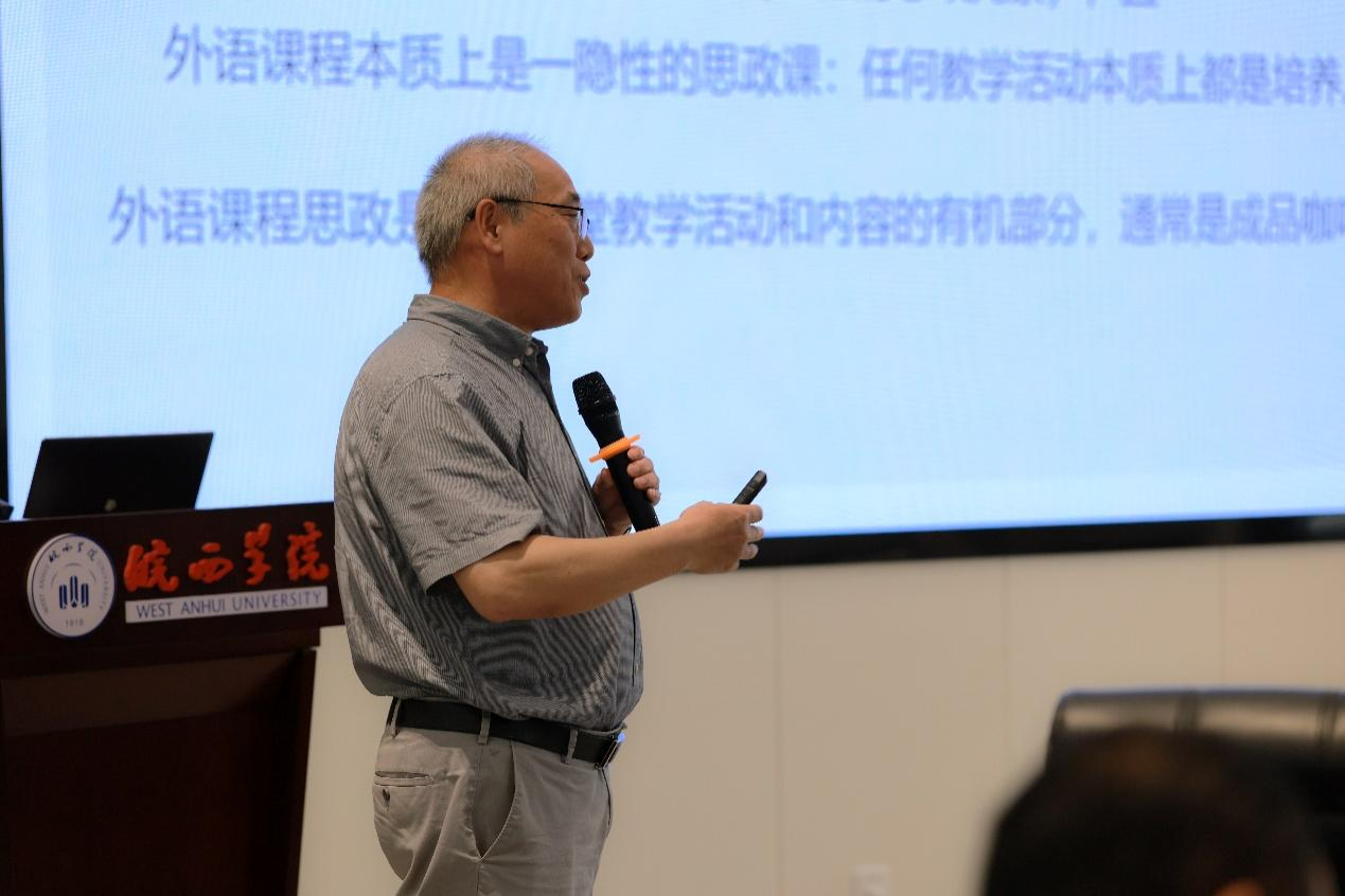 6月29日,由六安市教育科学研究院和皖西学院外国语学院共同主办、皖西学院外国语学院承办的“六安市大中小学一体化英语课程思政教育教学研讨会”在皖西学院科技楼成功举行。皖西学院党委委员、副院长张刚,六安市教育体育局党委委员、副局长陈刚,六安市教育科学研究院院长孔庆东等相关领导出席会议。六安市各县区英语教研员和教师代表、市直学校英语教师代表,以及在六安的普通高等学校、高职高专院校英语教师代表80余人参会。会议邀请华中科技大学二级教授徐锦芬、嘉兴大学外国语学院院长唐艳芳和浙江省教育厅英语教研员葛炳芳等国内知名专家做英语课程思政相关主旨报告。大会由皖西学院外国语学院院长高瑞阔主持。